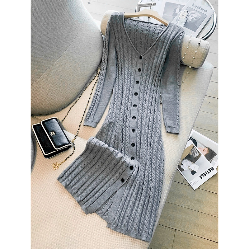 法式小香风麻花针织连衣裙女秋冬2025新款高级感长款内搭打底裙子