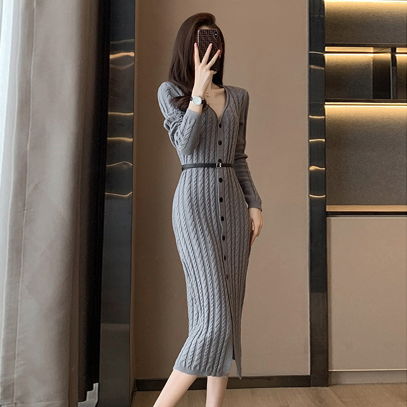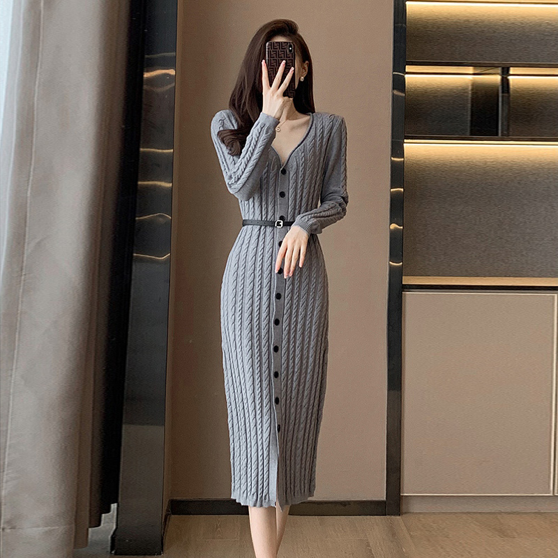 女神范小香风长袖针织连衣裙秋冬