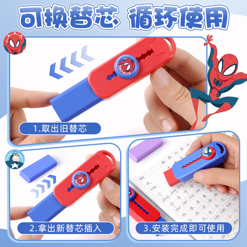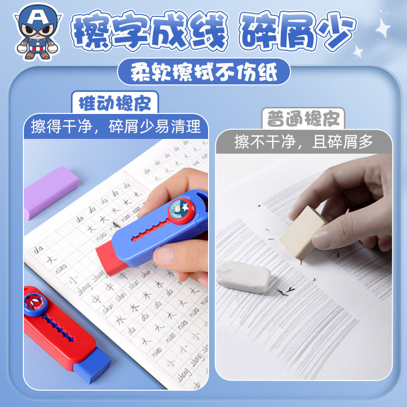 迪士尼橡皮擦小学生专用漫威蜘蛛侠不留痕4b推拉像皮擦无屑干净擦字成条推动式幼儿园儿童安全无毒奥特曼象皮
