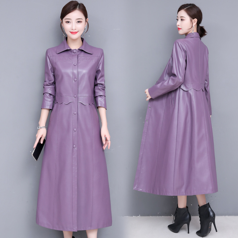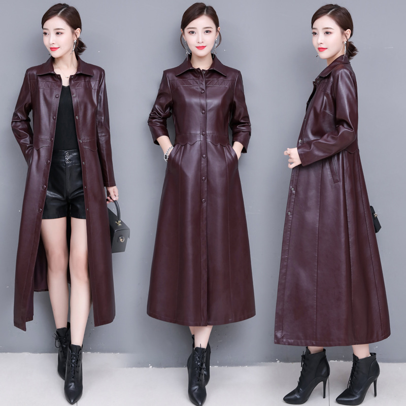 海宁真皮皮衣女大码中长款过膝皮风衣2023秋皮外套修身显瘦皮夹克