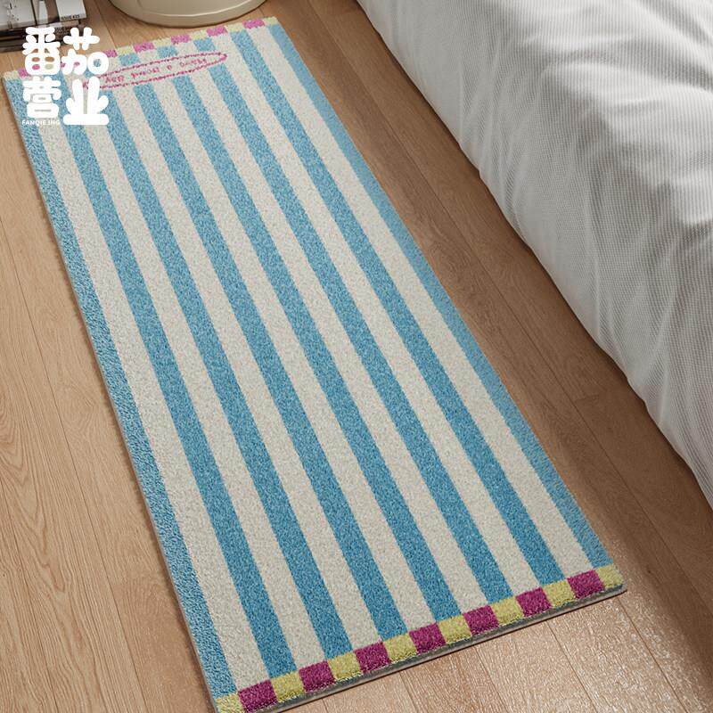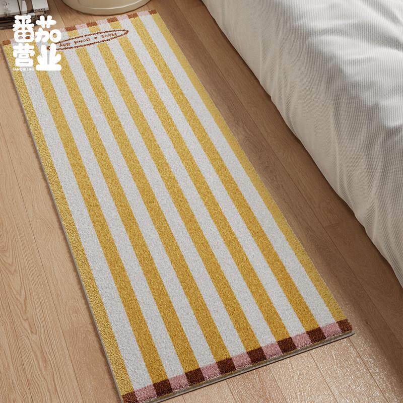 韩系家用卧室房间床边毯简约条纹客厅沙发茶几垫长条地毯毛绒脚垫