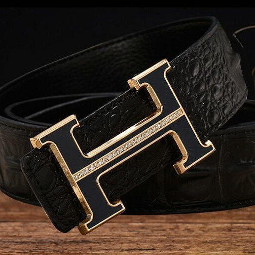 皮带男H扣真皮鳄鱼纹平滑扣韩版字母腰带时尚潮流百搭男裤带