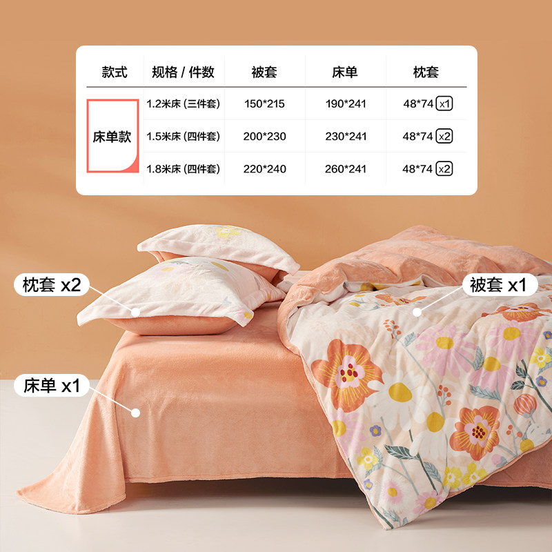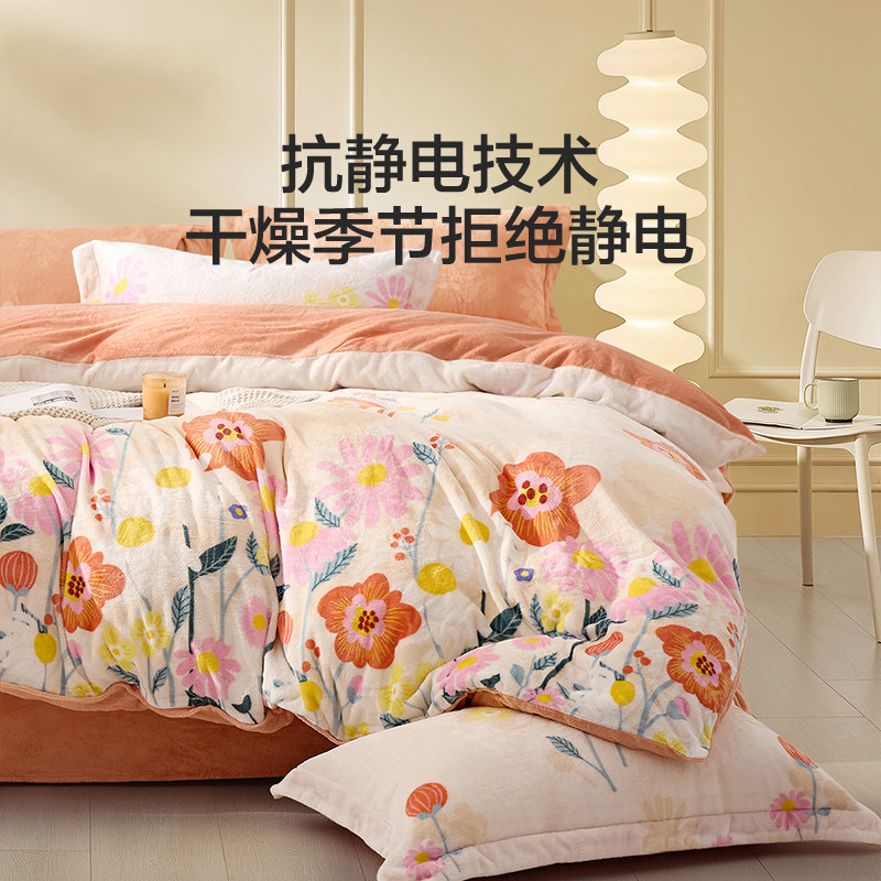 罗莱生活LOVO乐蜗牛奶绒四件套秋冬双面加绒被套法兰绒珊瑚绒加厚