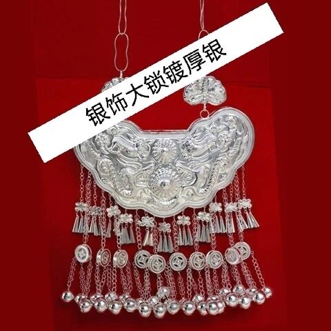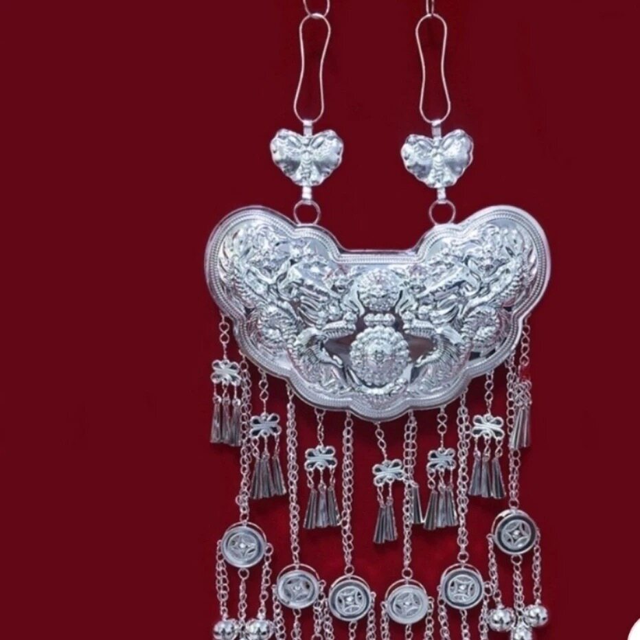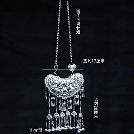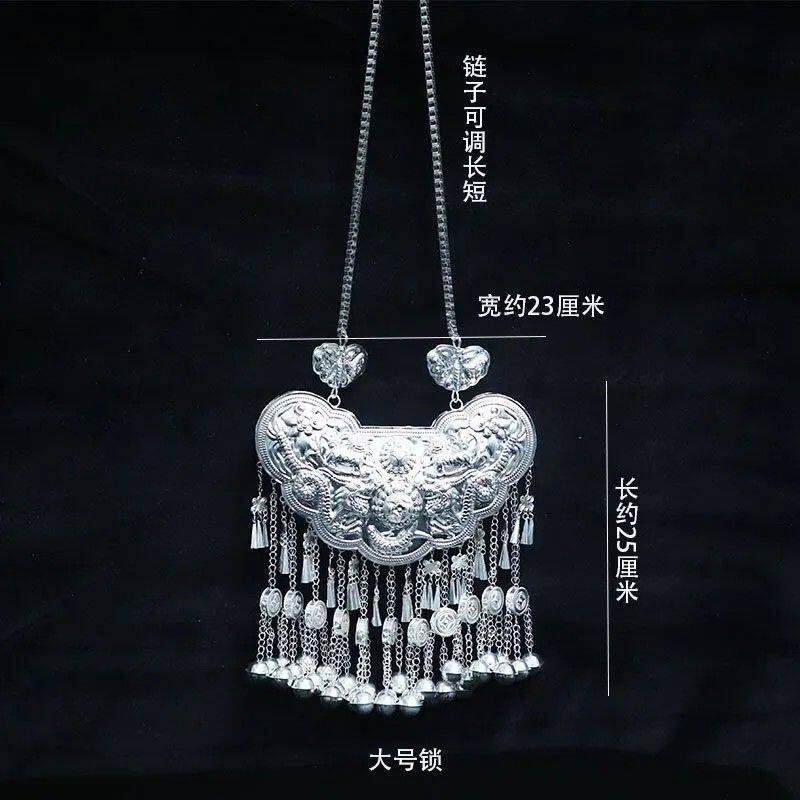 苗族银饰流成人苏长款长命锁项圈铜材质镀银新款少数民族项链挂脖