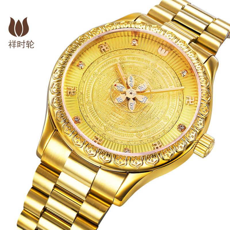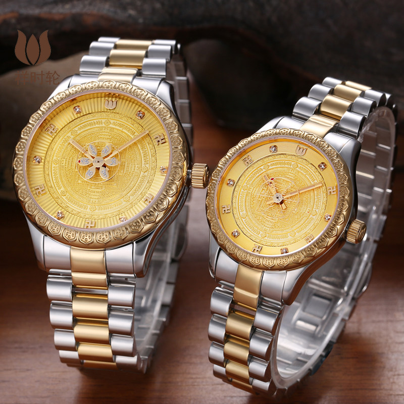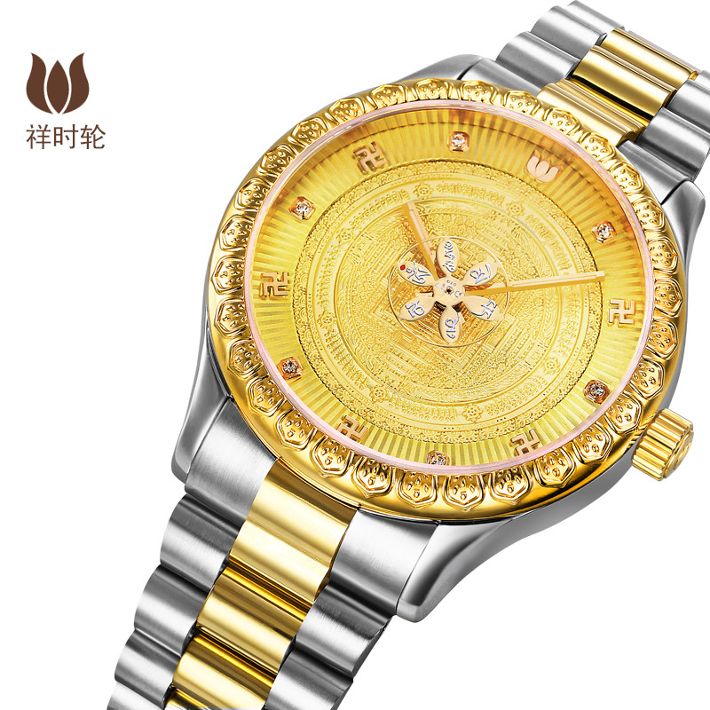 祥时轮佛表时轮金刚坛城手表六字真言手表情侣机械机手表防水佛表