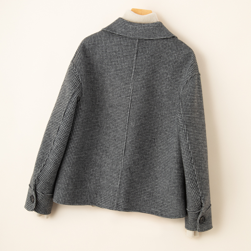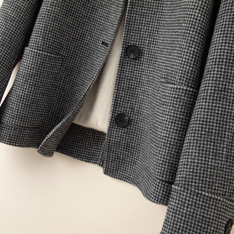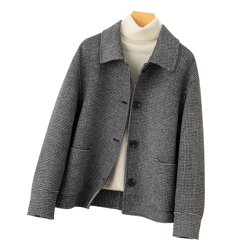 25秋冬新款双面羊绒呢大衣女短款小个子宽松大码羊毛呢外套千鸟格