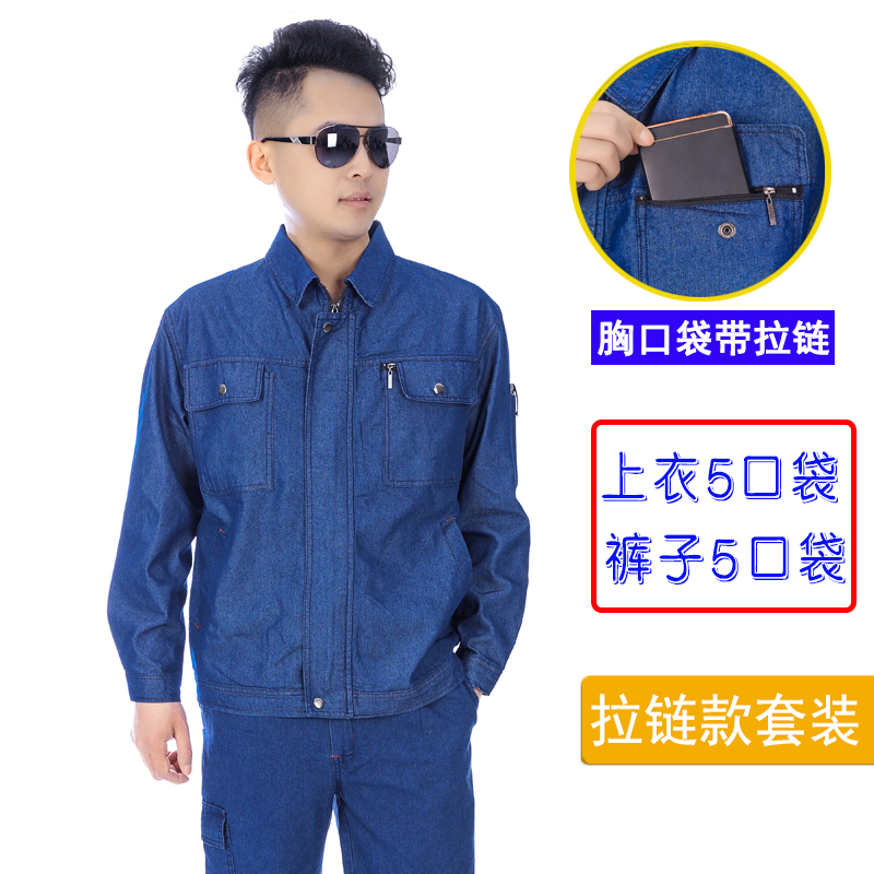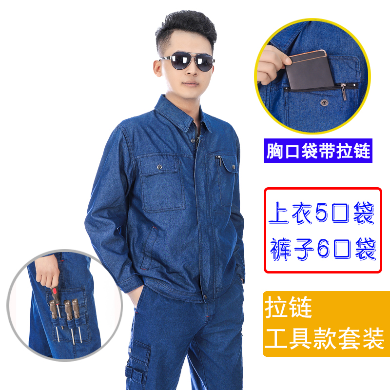 夏季薄款牛仔工作服套装男多口袋宽松劳保服电焊工人工装厂服