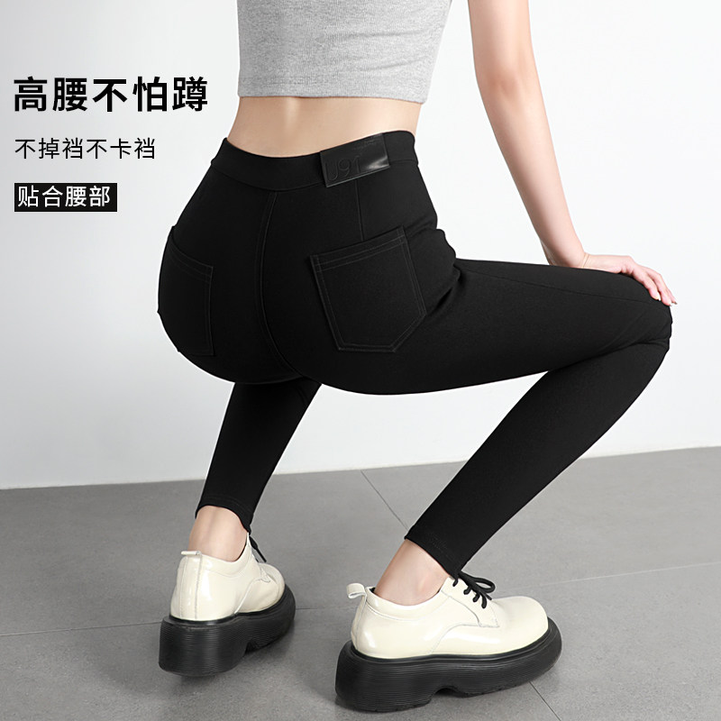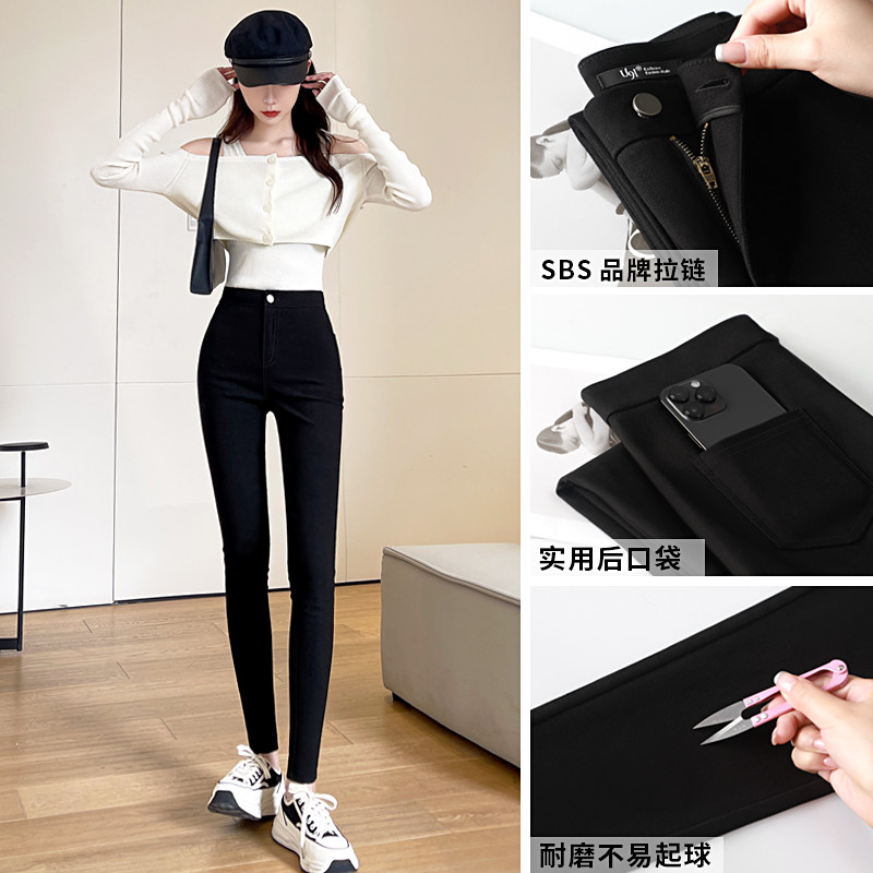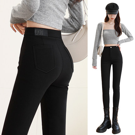 加绒高腰打底裤女秋冬款外穿黑色铅笔修身魔术小脚紧身弹力小黑裤