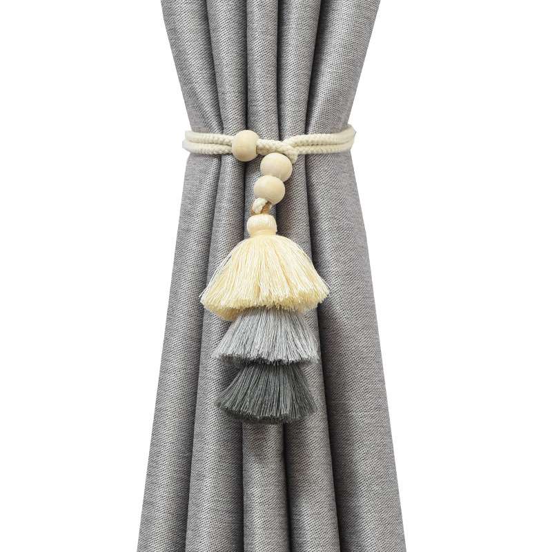 现代简约三色流苏窗帘绑带 可调节免打孔波西米亚风窗帘扎束带