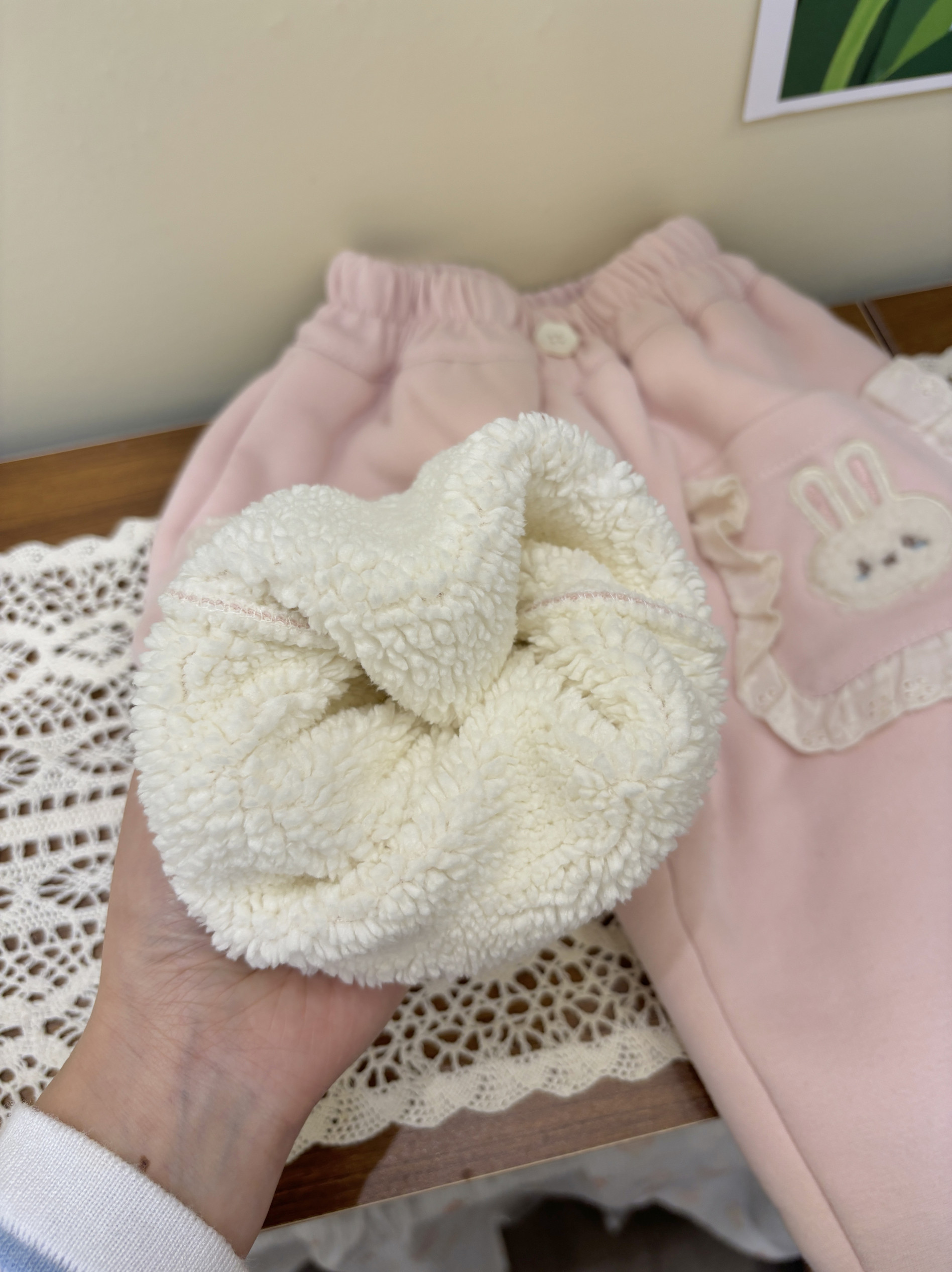 哎呀呀过冬加厚羊驼绒卫裤2025新款秋冬甜美可爱贴布兔子607