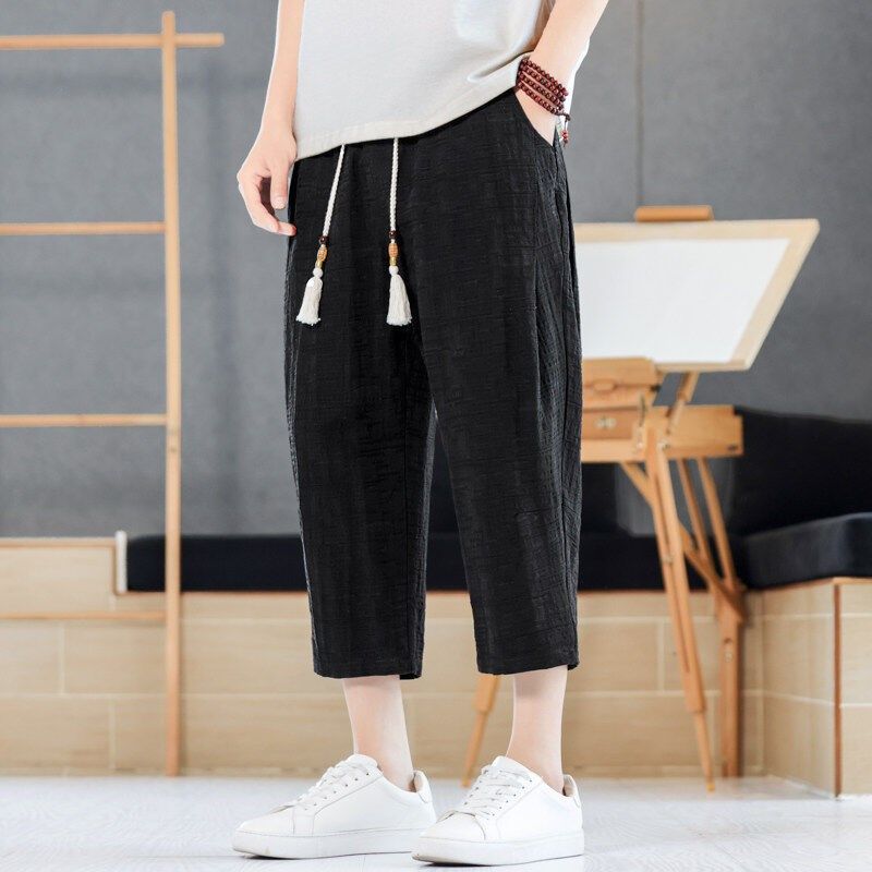 短裤七分裤男款夏季薄款透气棉麻裤子新中式灯笼裤亚麻哈伦萝卜裤