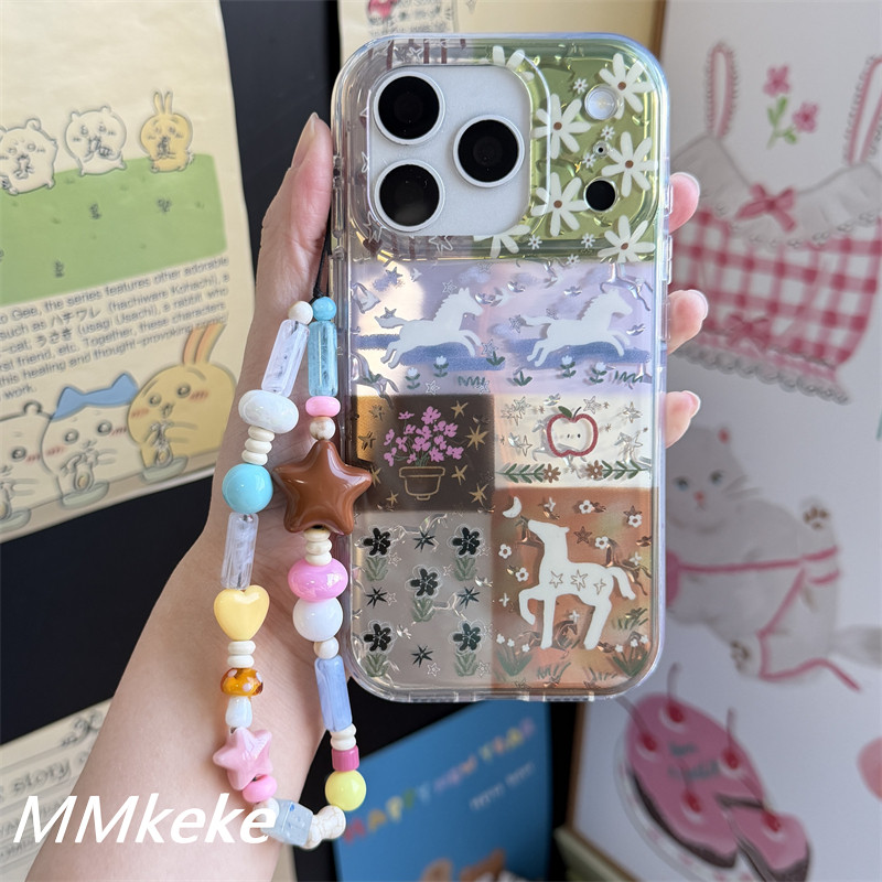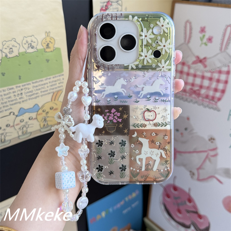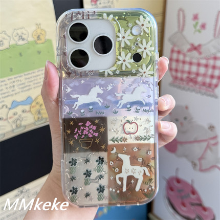 MMkeke高级感ins软萌可爱花朵卡通小马适用iPhone17Promax双层imd马年手机壳苹果16pro保护套15pm小众个性14