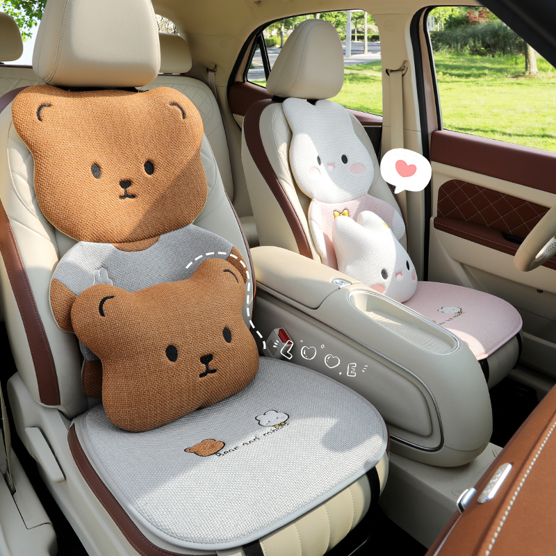 汽车坐垫夏季凉垫2025新款四季通用透气亚麻车内座椅套卡通可爱女