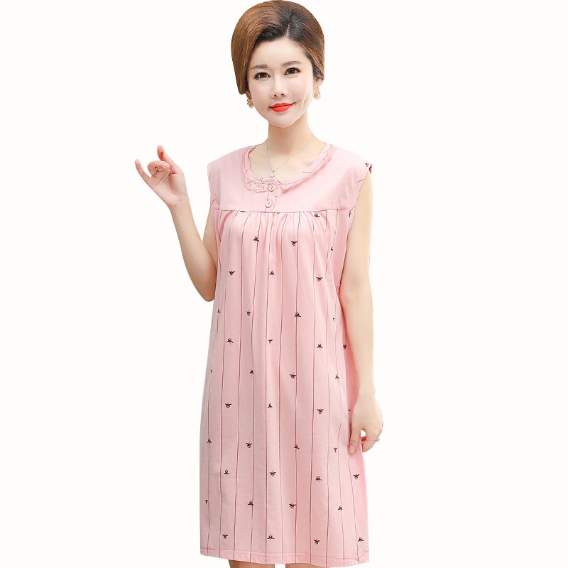 睡裙女夏季纯棉宽松睡衣中老年人薄款无袖背心妈妈夏天裙子家居服