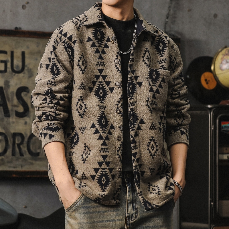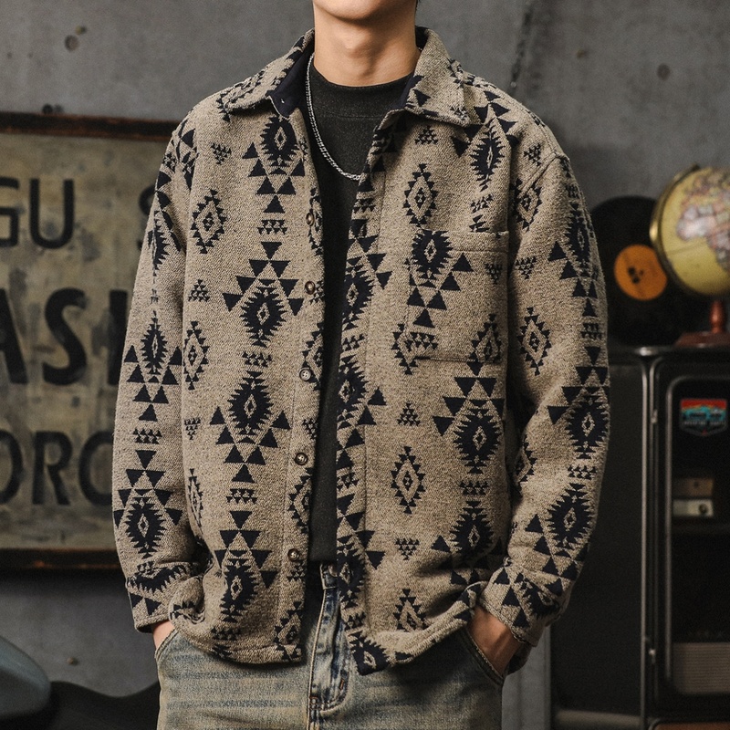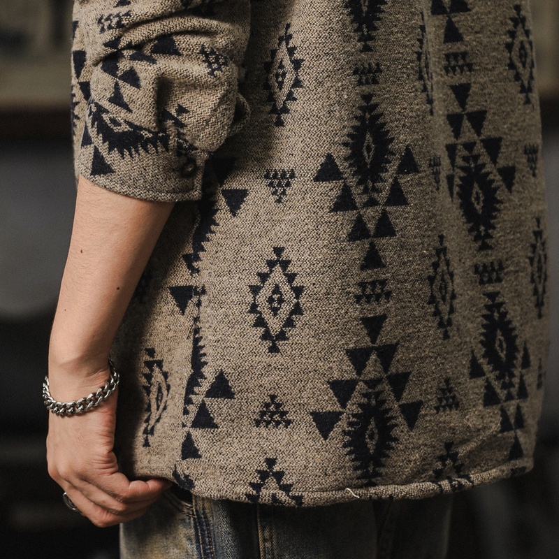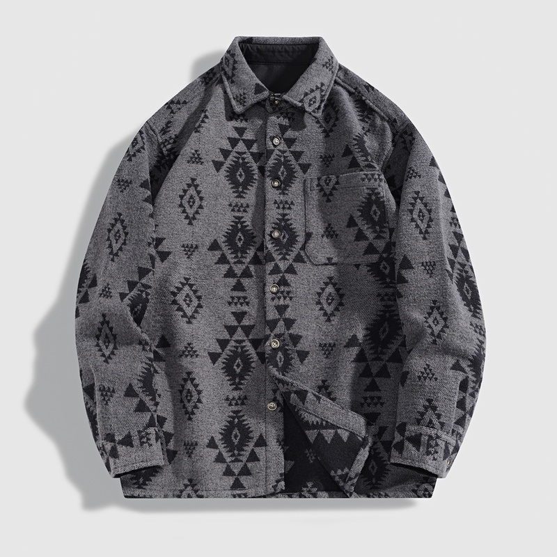 美式重磅提花衬衫男春季新款复古痞帅毛呢衬衣高级感翻领工装外套