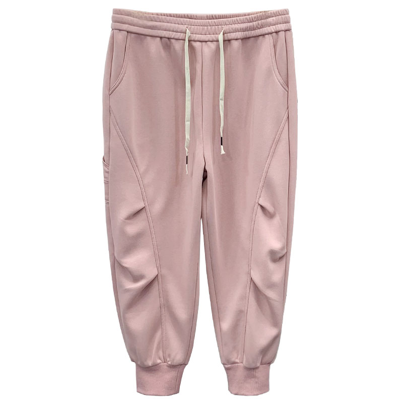 春季新款加肥大码200斤宽松遮肉压褶皱膝盖束脚休闲裤卫裤 长裤女