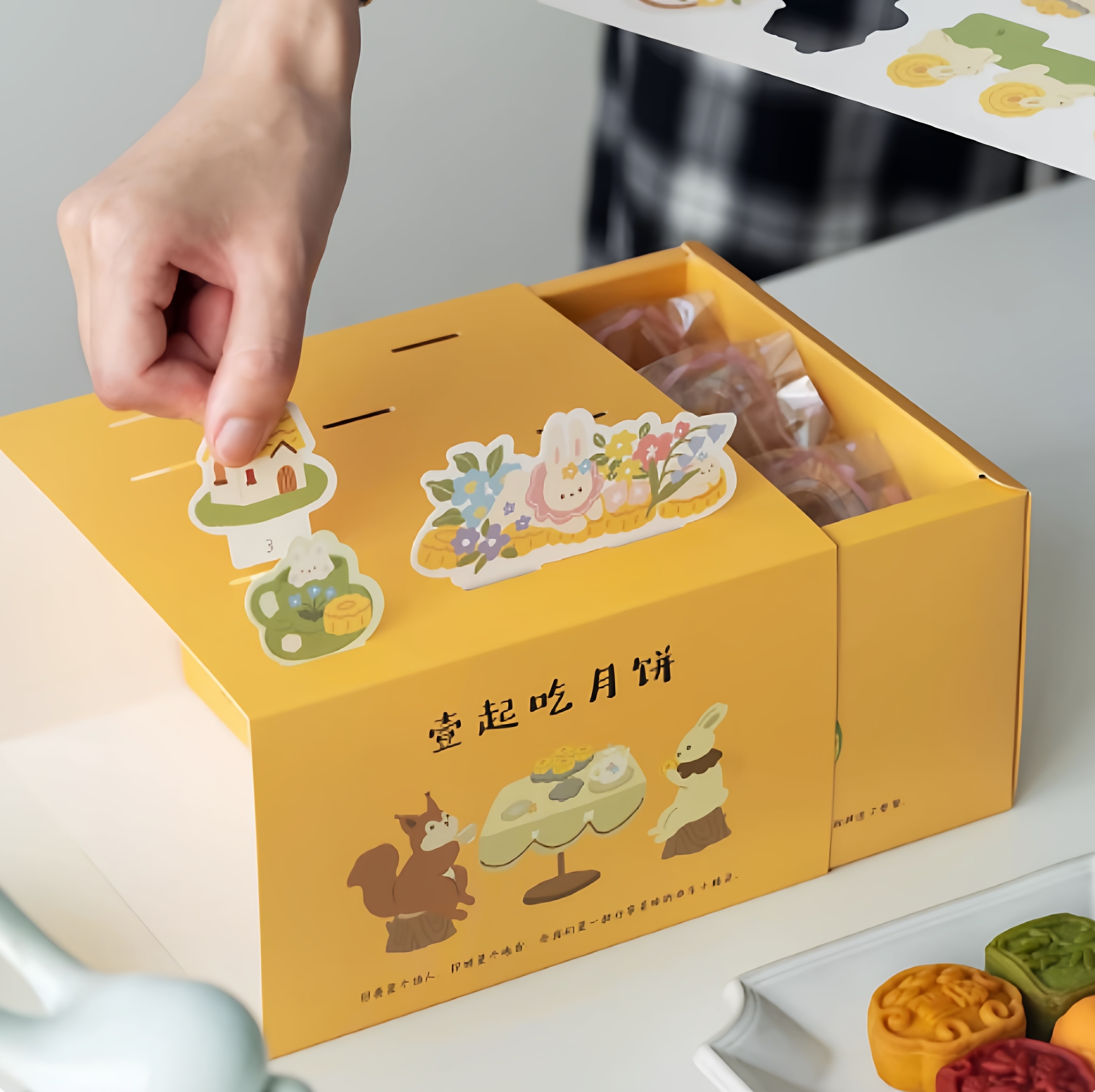 2025酒红高档中秋月饼礼盒包装盒冰皮流心礼品盒兔折叠8粒10粒装