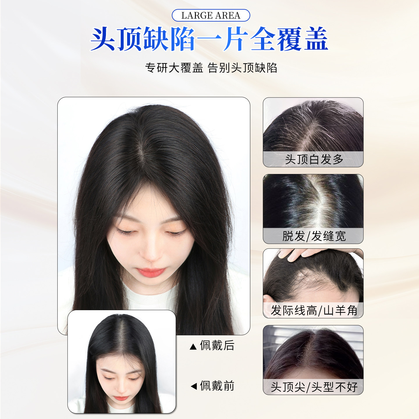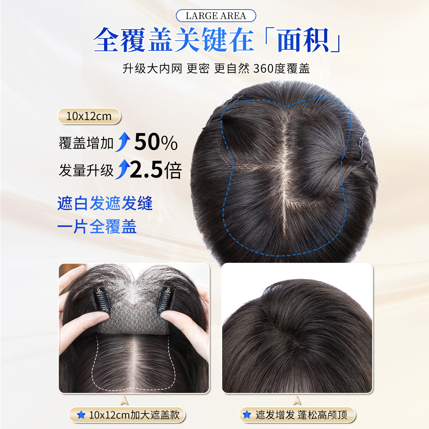 假发女片头顶大面积补发全真人发蓬松增发量遮白发自然无痕补发片