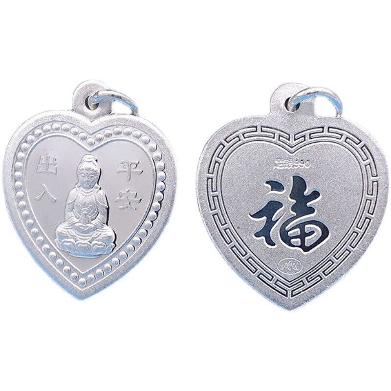 990纯银观音实心男款吊坠 宝宝小孩银牌平安民族风足银项坠儿童款