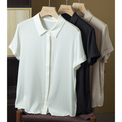 丝艺 真丝双乔短袖衬衫女桑蚕丝顺滑暗门襟通勤气质翻领上衣夏季