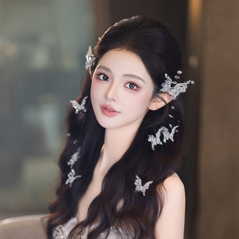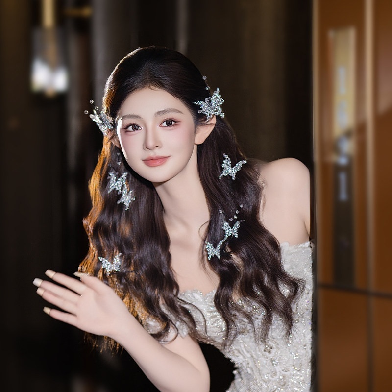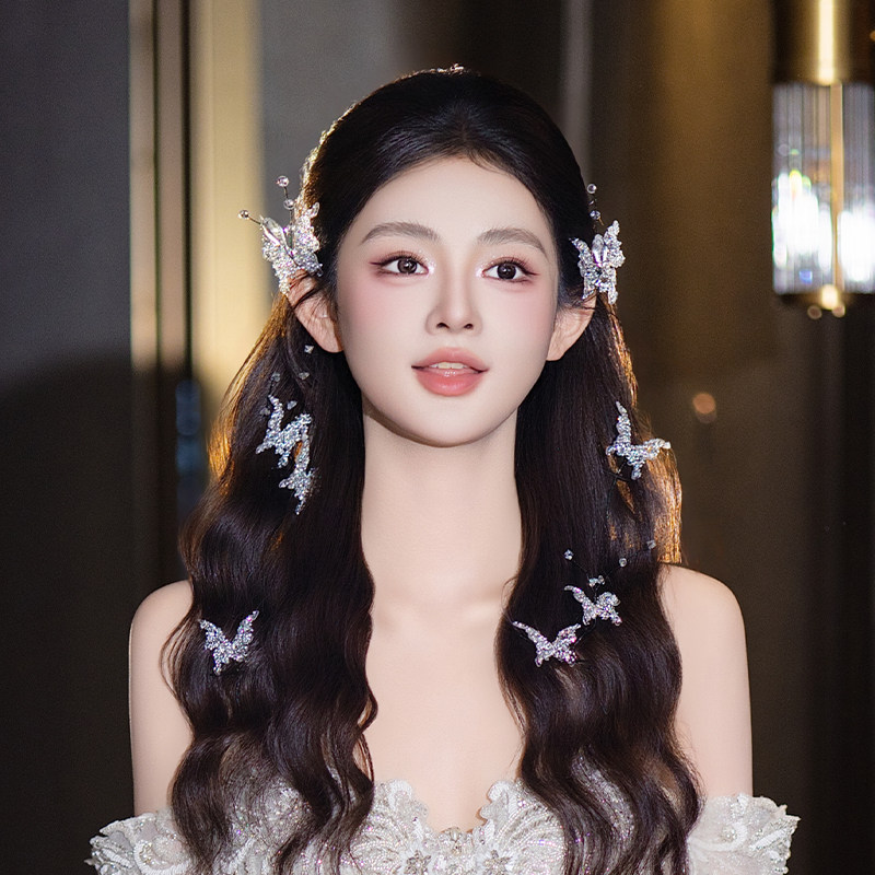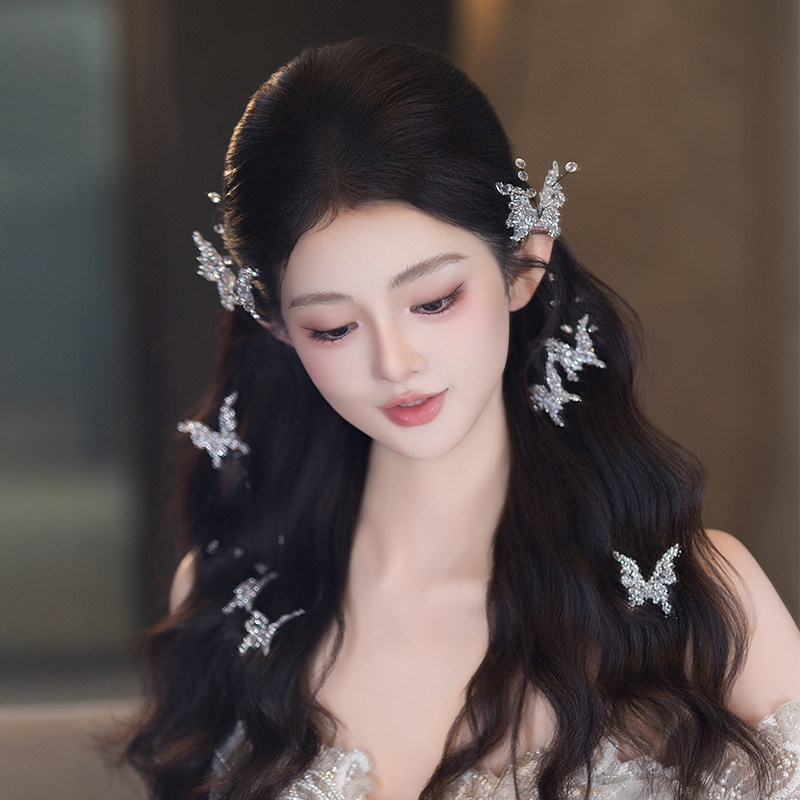 婚礼新娘头饰唯美蝴蝶发饰气质韩式精致简约时尚侧边婚纱礼服配饰