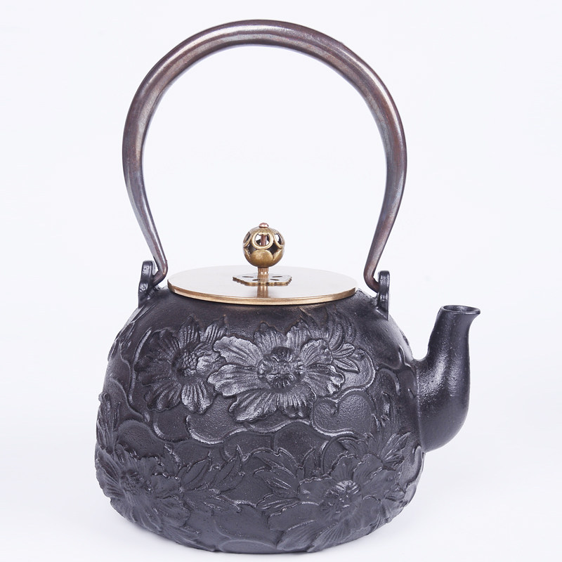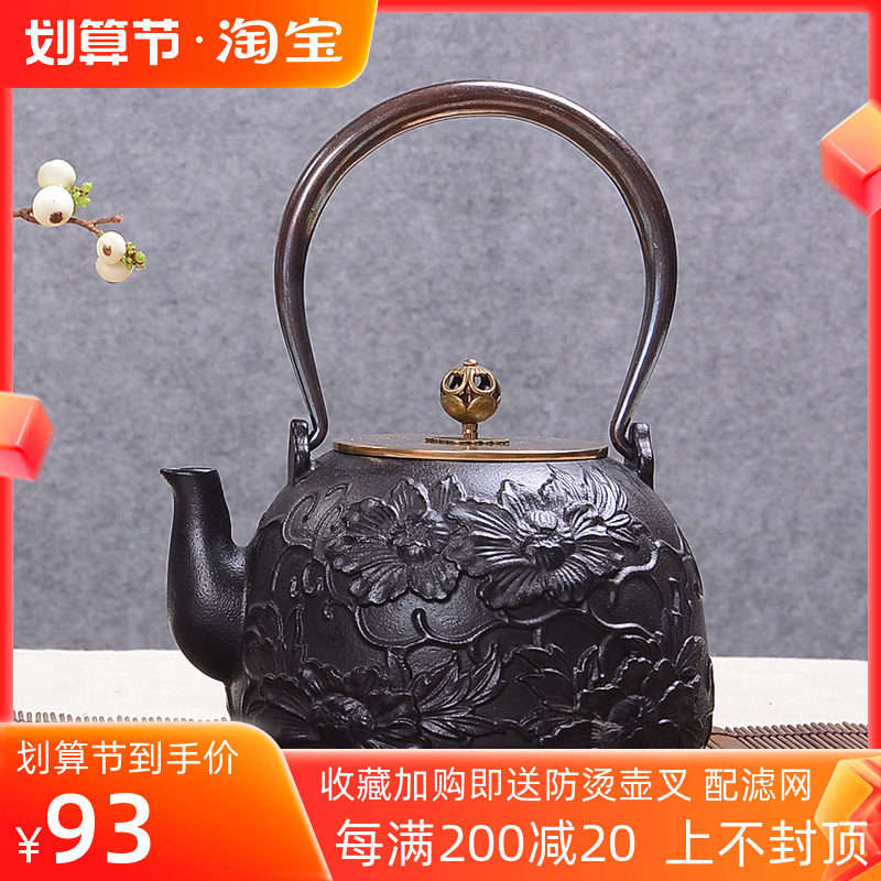 铁壶南部牡丹盛开铸铁壶无涂层生铁壶老铁壶烧水铁茶壶套组