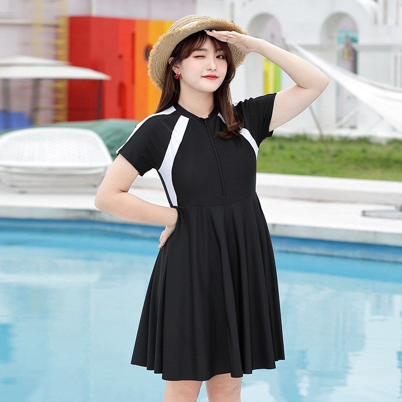 泳衣女加肥加大码裙式连体保守胖mm200斤遮肚大号泡温泉游泳装300