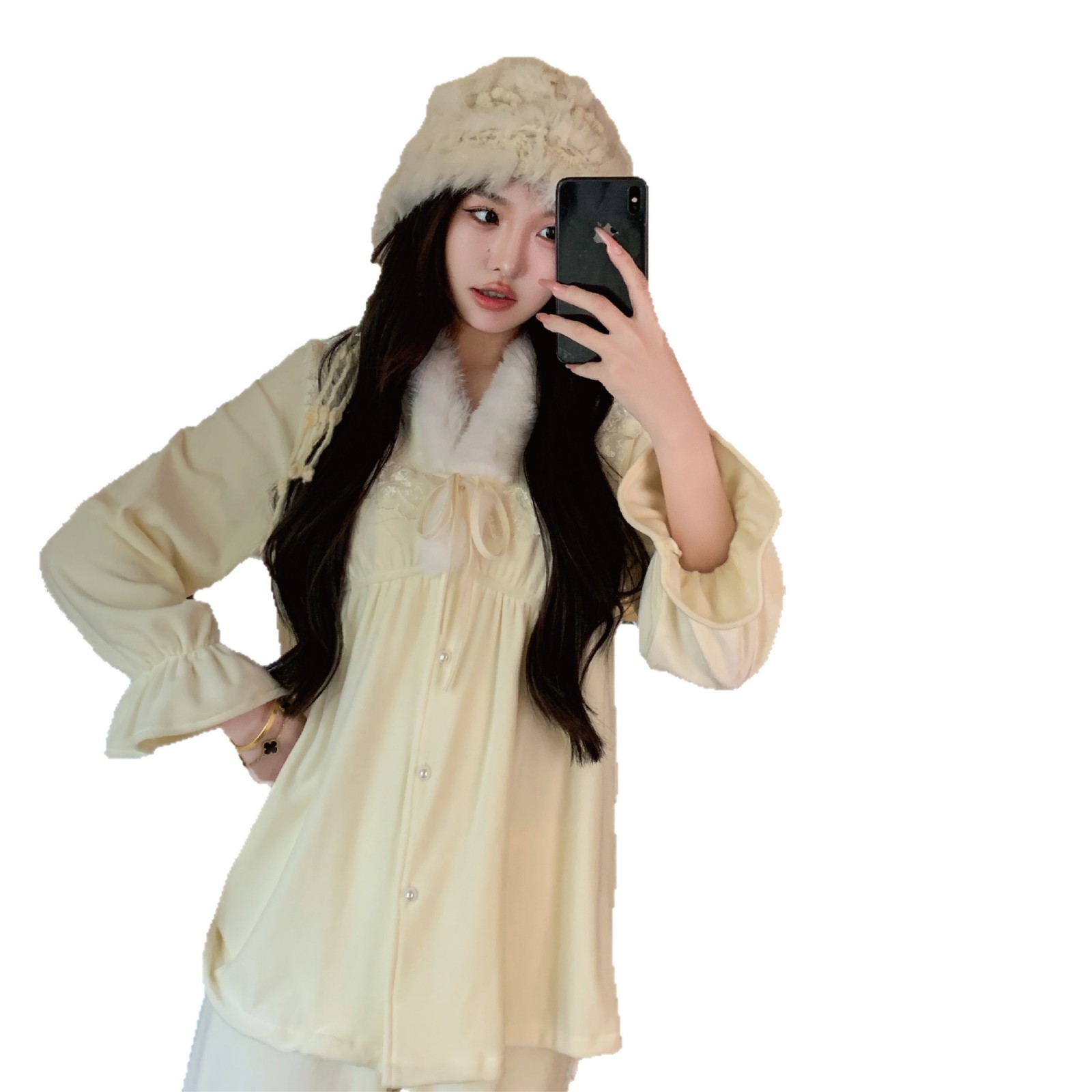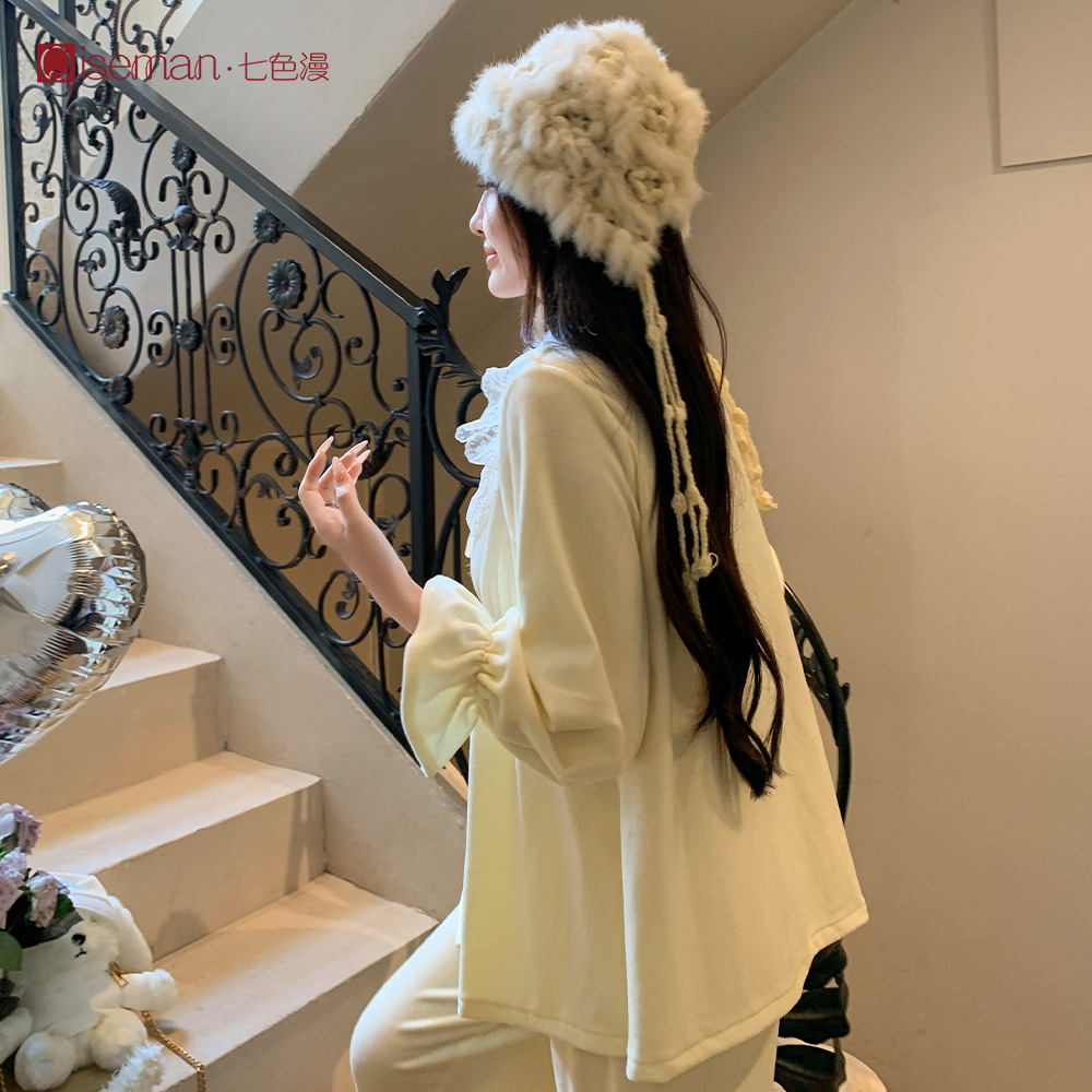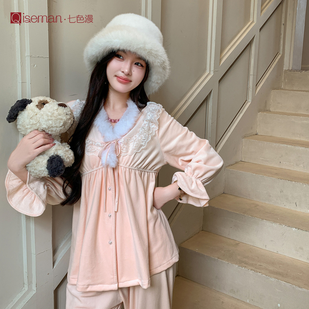 感睡衣套装女秋冬海岛绒加厚保暖睡衣可外穿法式甜美家居服冬