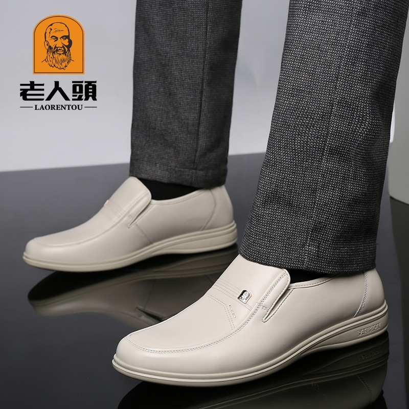 老人头男鞋镂空春季皮鞋男士真皮透气休闲小白色皮鞋软底爸爸鞋