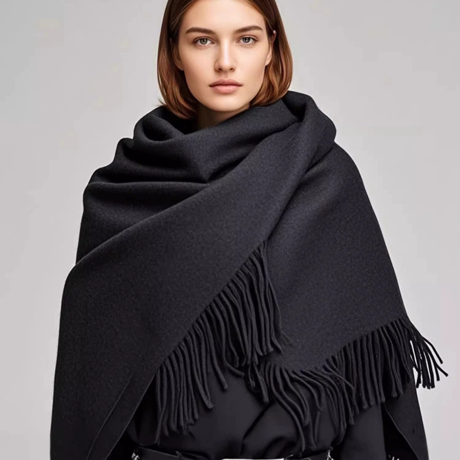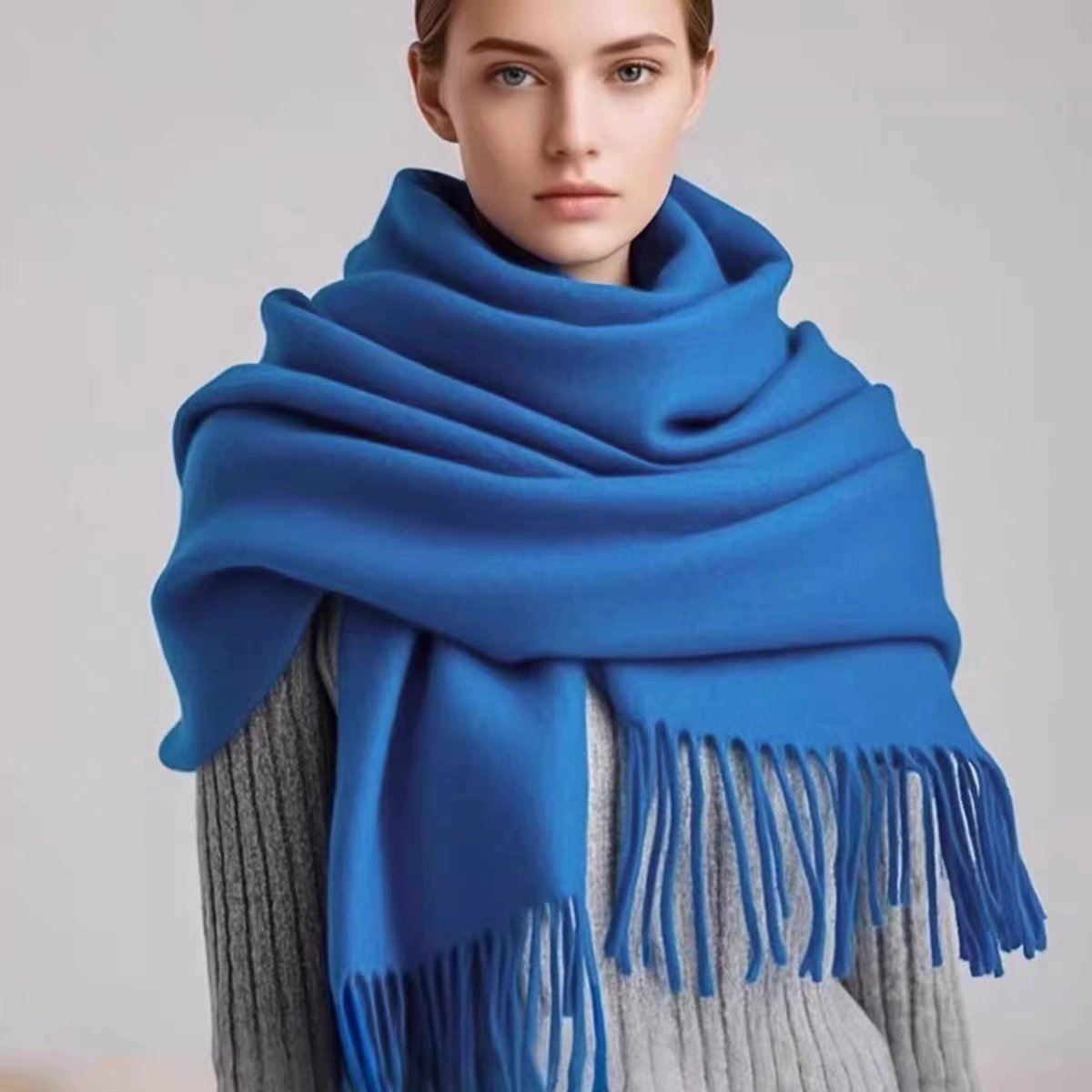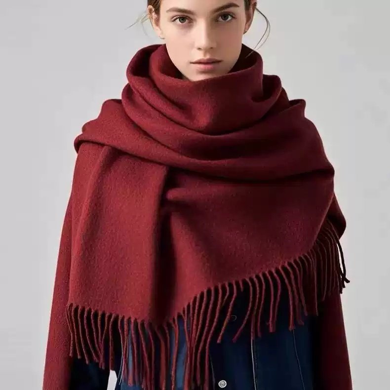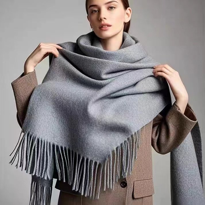 鄂尔多斯市100%纯山羊绒围巾女士白色加厚保暖大披肩两用高端围脖