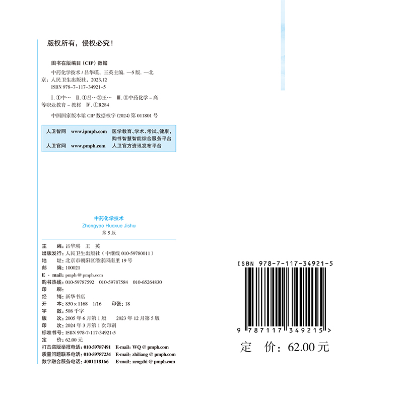 现货正版 平装 赠网络增值服务 中药化学技术 第5版 十四五规划教材 高职中药 吕华瑛 王英 人民卫生出版社 9787117349215