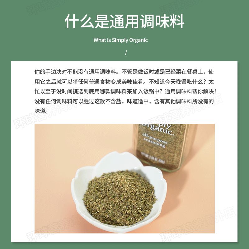 美国Simply Organic通用调料洋葱大蒜罗勒牛至香菜百里香混合调味