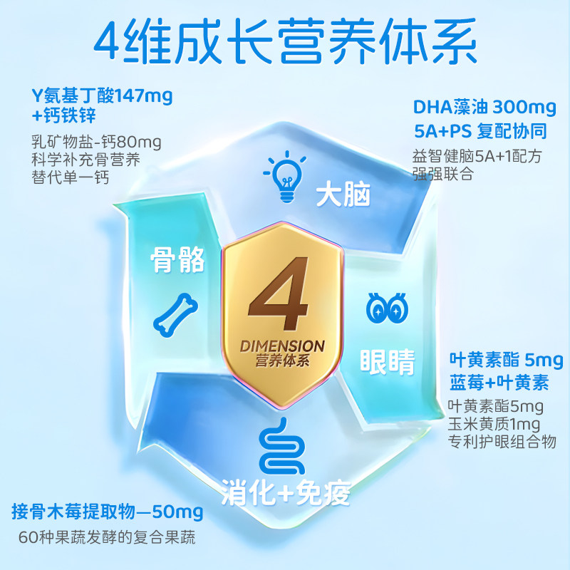 江中青少年每日综合营养包7-18岁乳酸菌蓝莓叶黄素钙铁锌DHA藻油