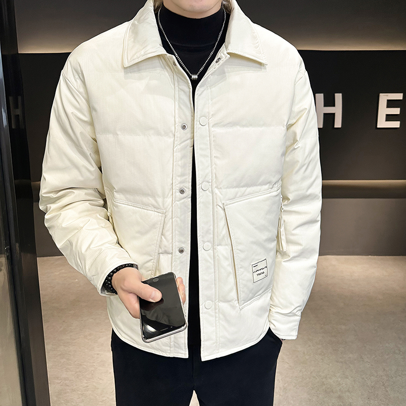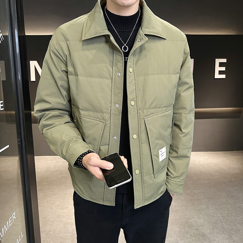 冬季男士羽绒服潮流韩版休闲帅气青年男士轻薄保暖男装衬衫领外套