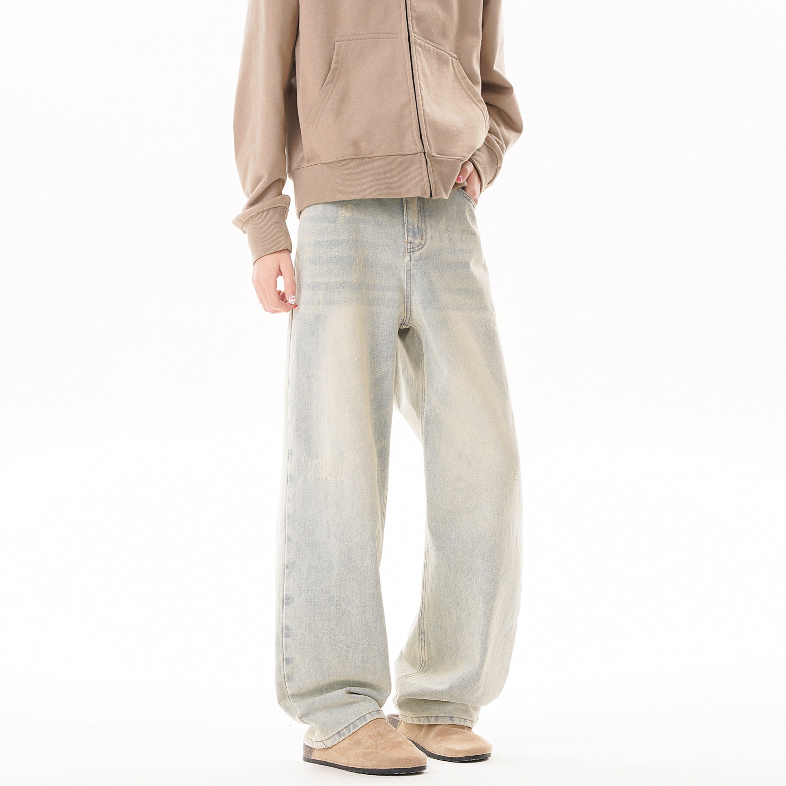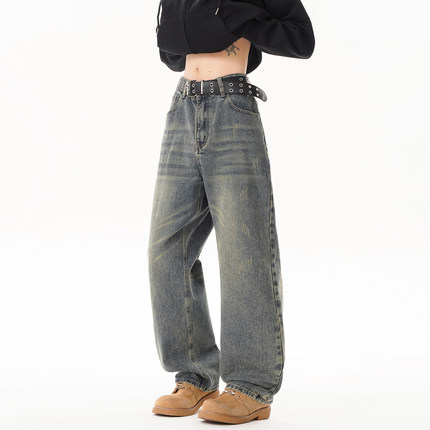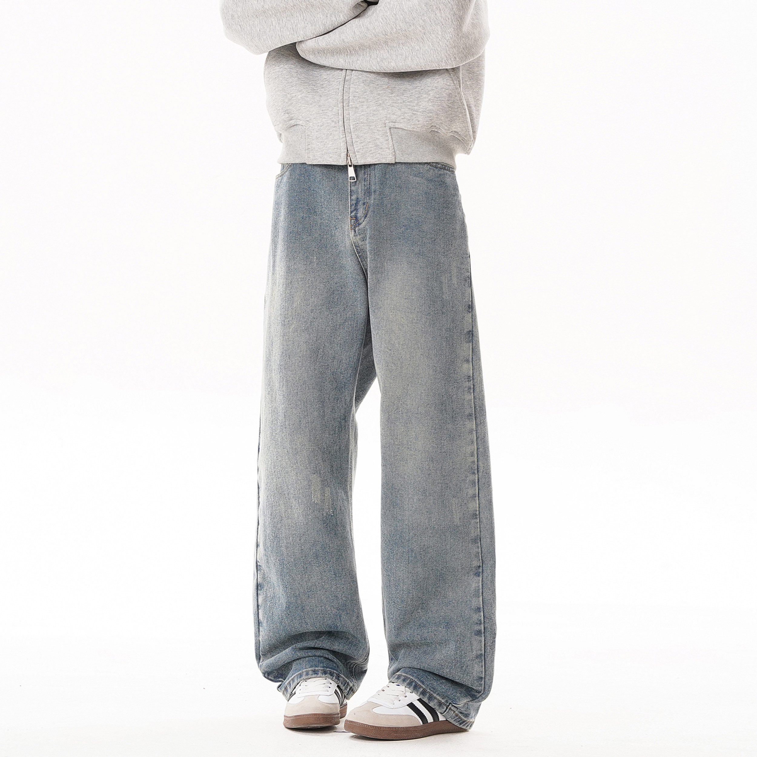 美式复古水洗牛仔裤男2026春季新款宽松阔腿长裤潮牌cleanfit牛仔