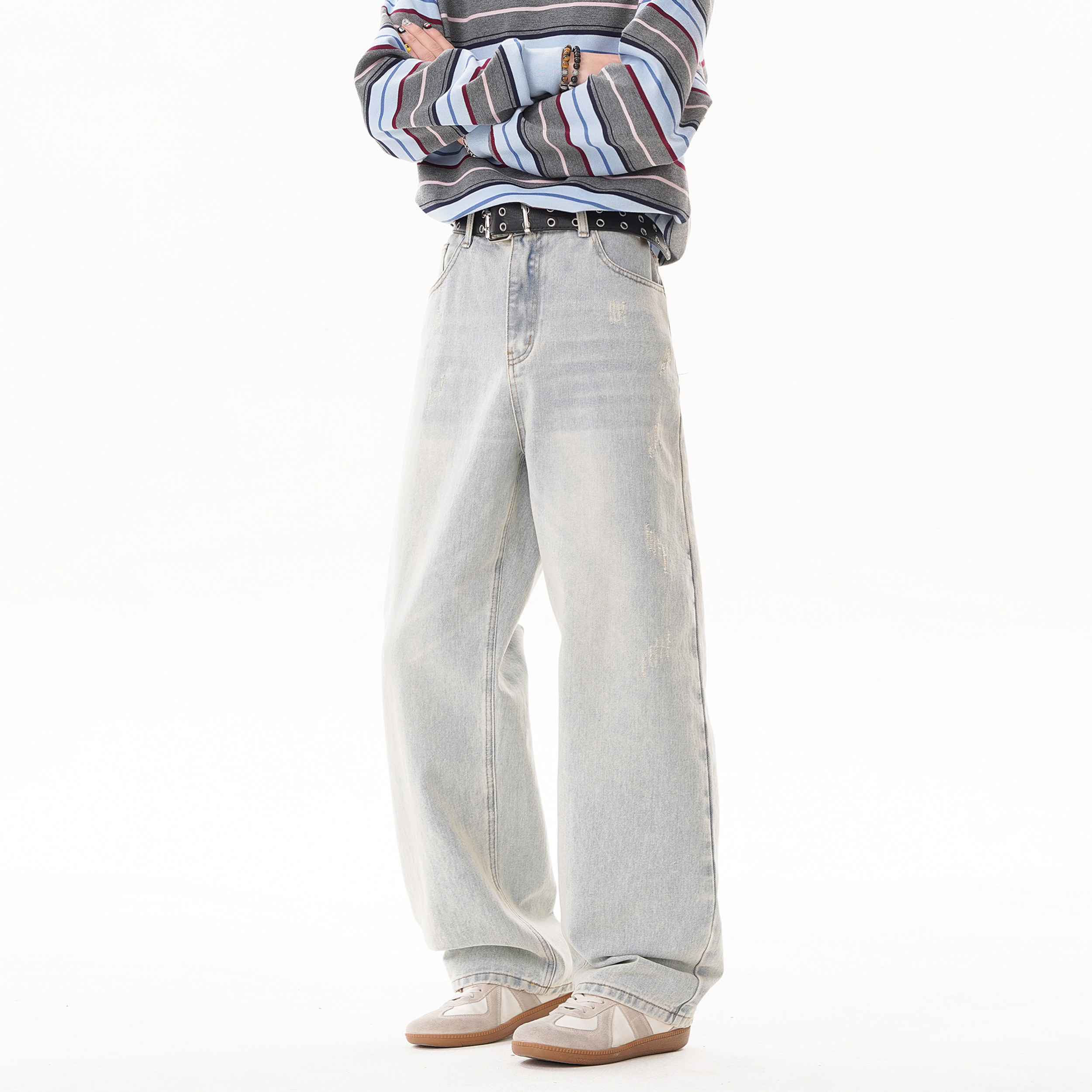 美式复古水洗阔腿牛仔裤男春季