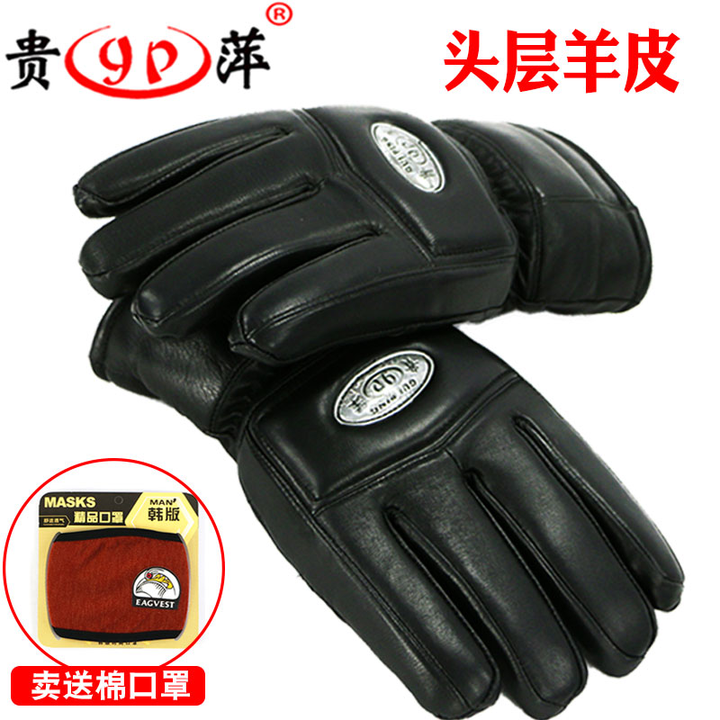 真皮摩托车保暖皮手套防风防寒骑车男士加厚加厚棉冬季羊毛一体