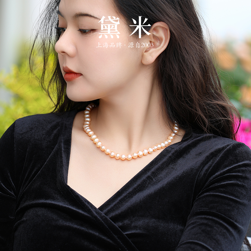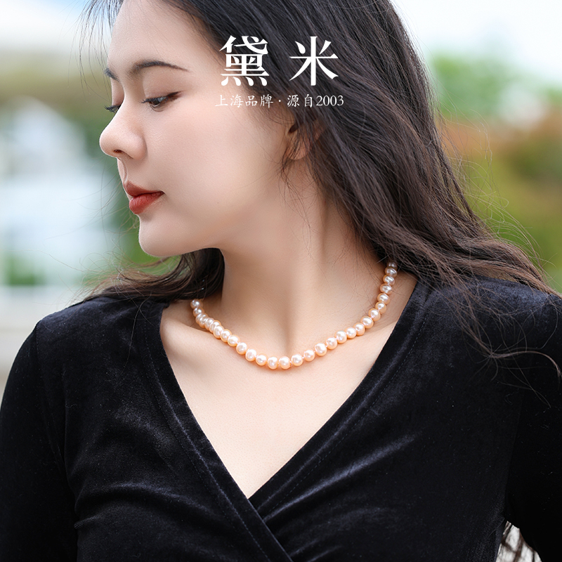 黛米珠宝 满江红 7.3-8.3mm近圆形无核淡水珍珠项链女S925银颈链