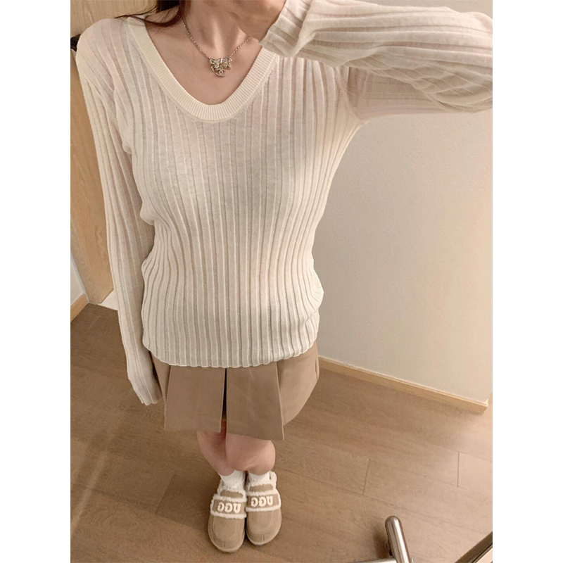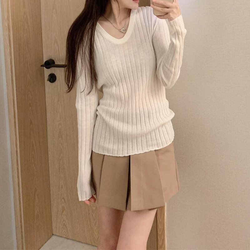 韩系辣妹v领坑条针织毛衣女2025春季新款加厚保暖内搭打底衫上衣