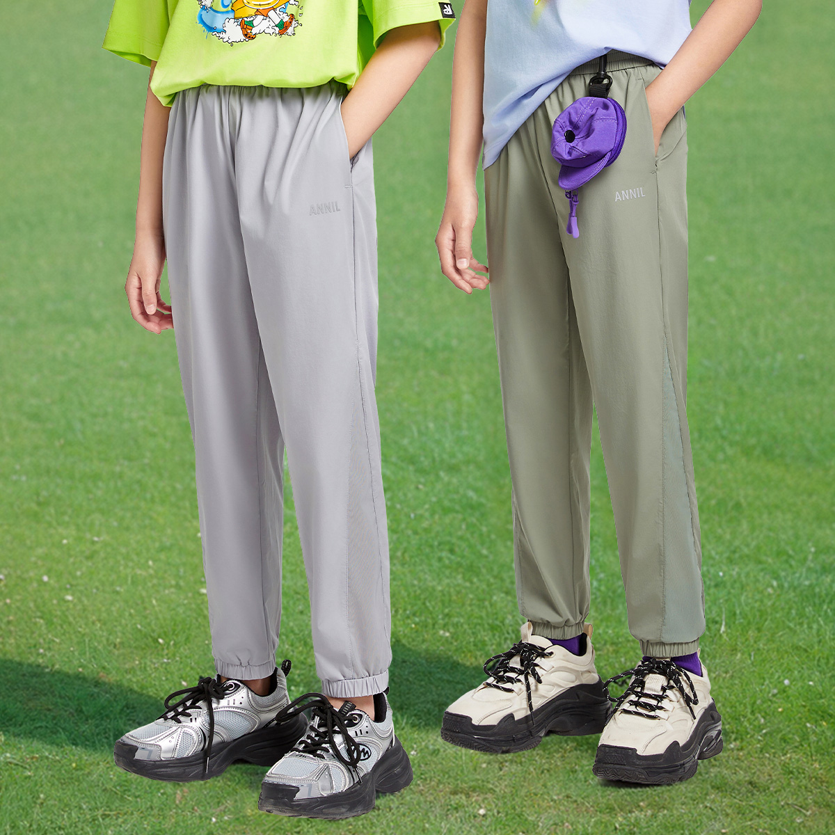 安奈儿童装男童女童防晒防蚊裤子2024夏新款速干运动束脚弹力长裤