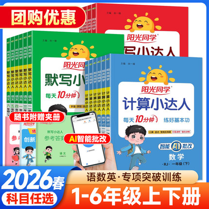 2026春阳光同学计算小达人默写一二三年级四五六年级下册人教冀教版小学数学思维训练同步练习册口算题卡应用题语文英语字词句子