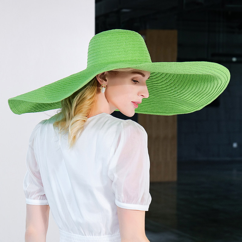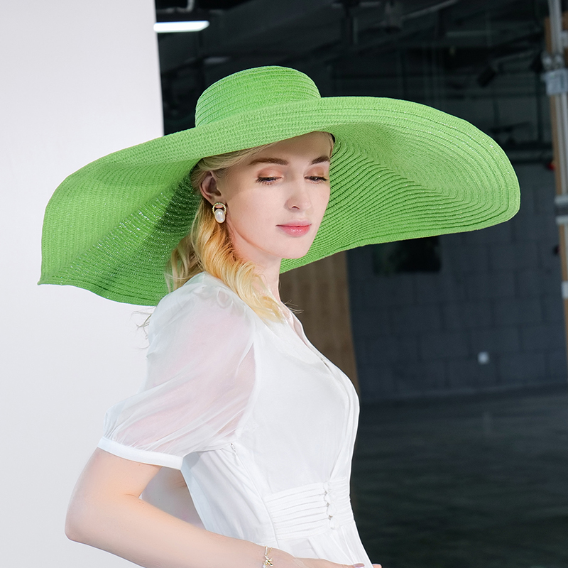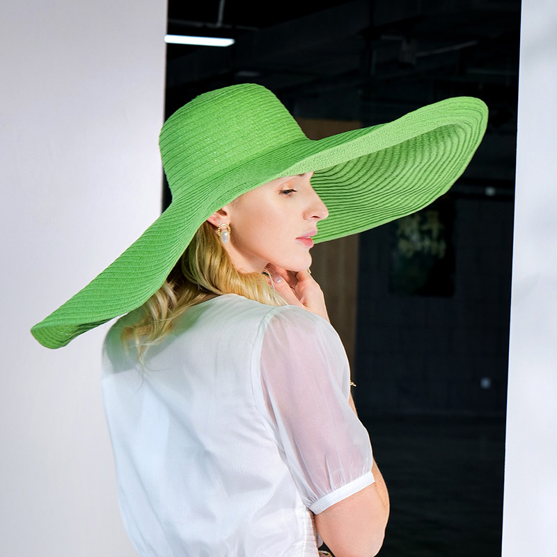 EE 夏季新款 时尚大沿遮阳度假沙滩帽 防晒遮阳绿色帽子女夏
