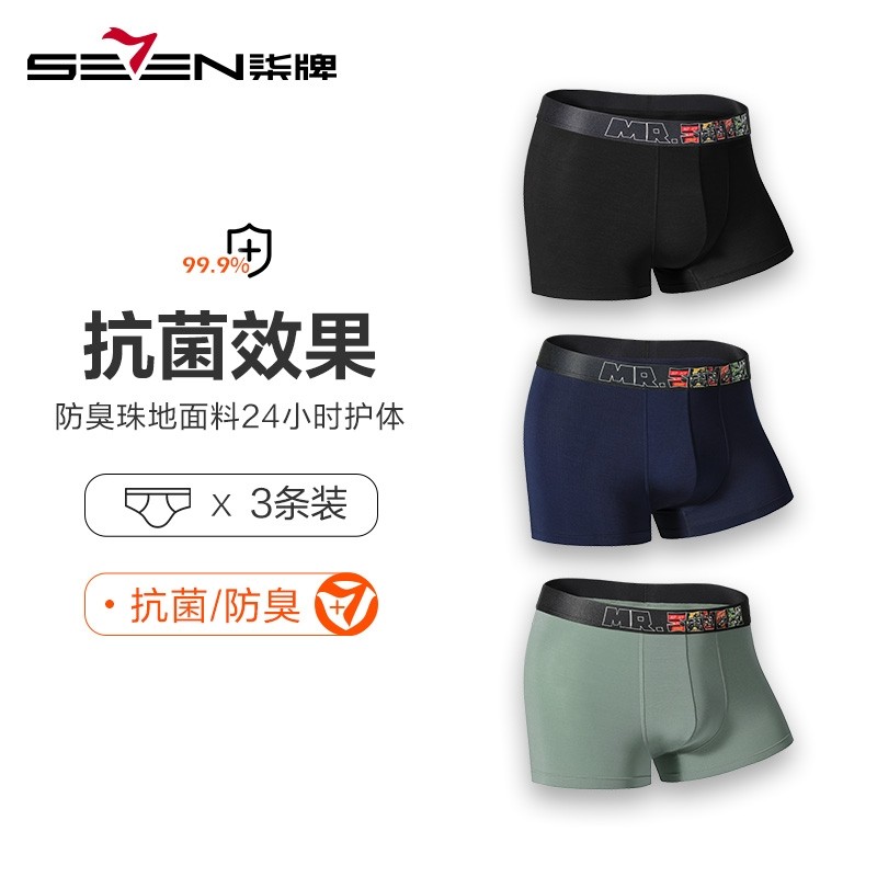 柒牌清仓内裤男莫代尔平角裤青年抗菌无痕四角短裤头印花边平角裤