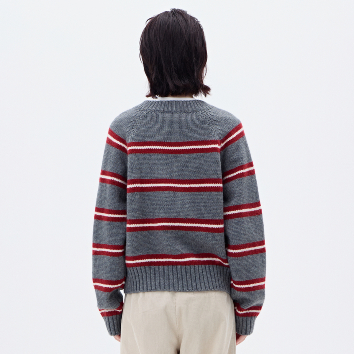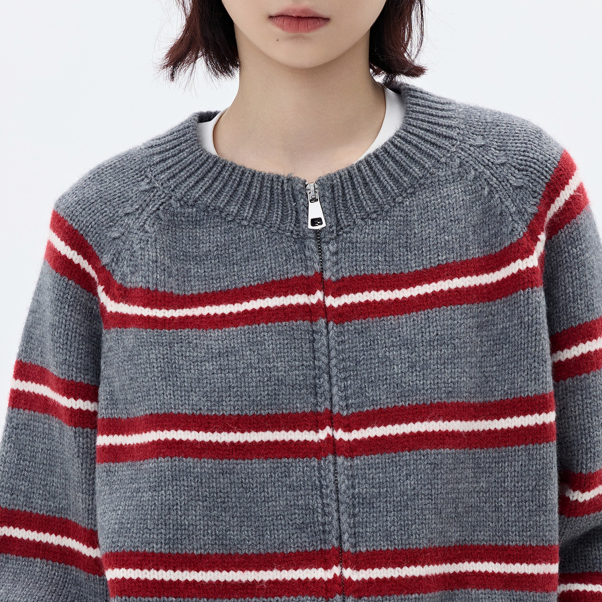 北欧时刻格蕾系撞色条纹针织开衫女2025年秋冬新款双拉链毛衣外套