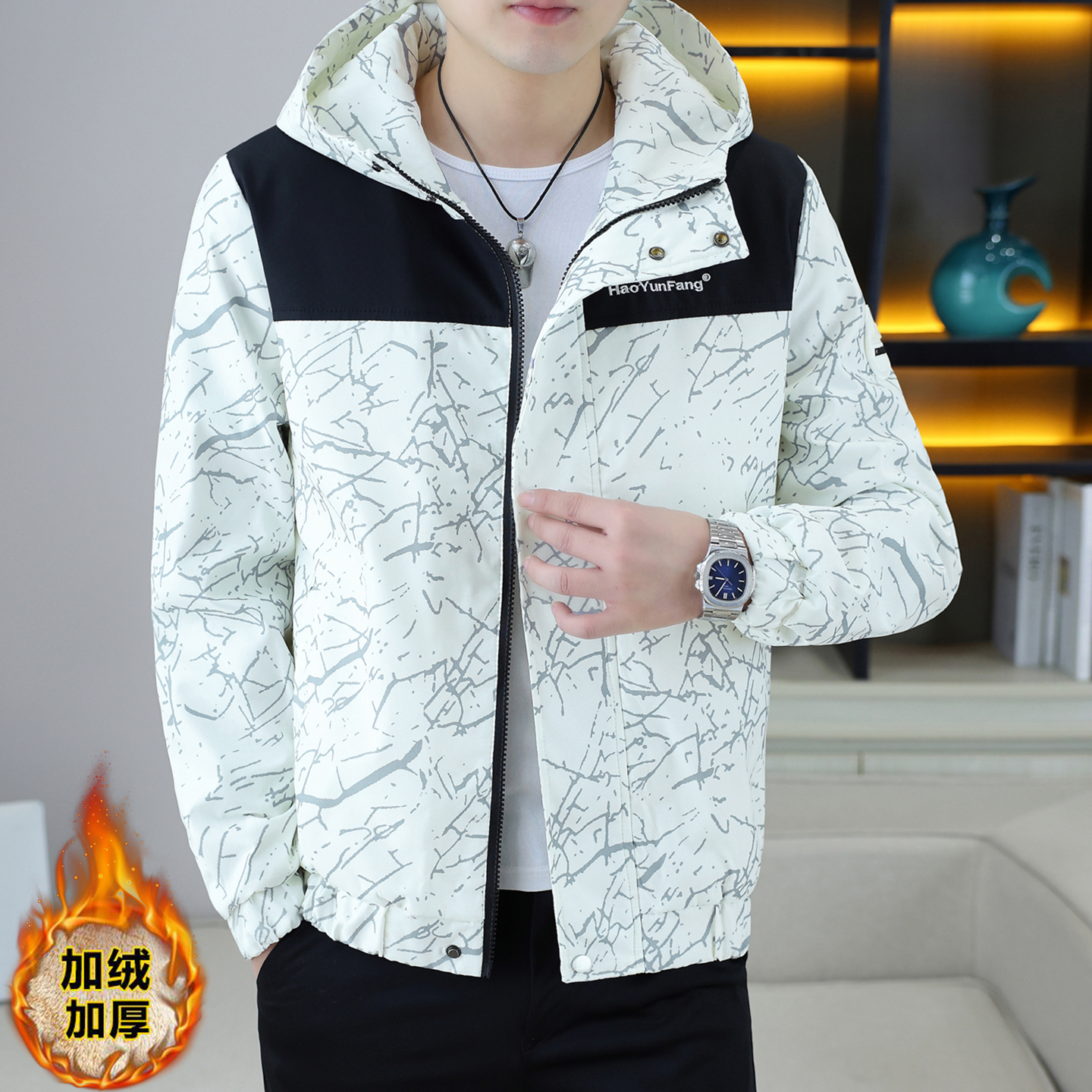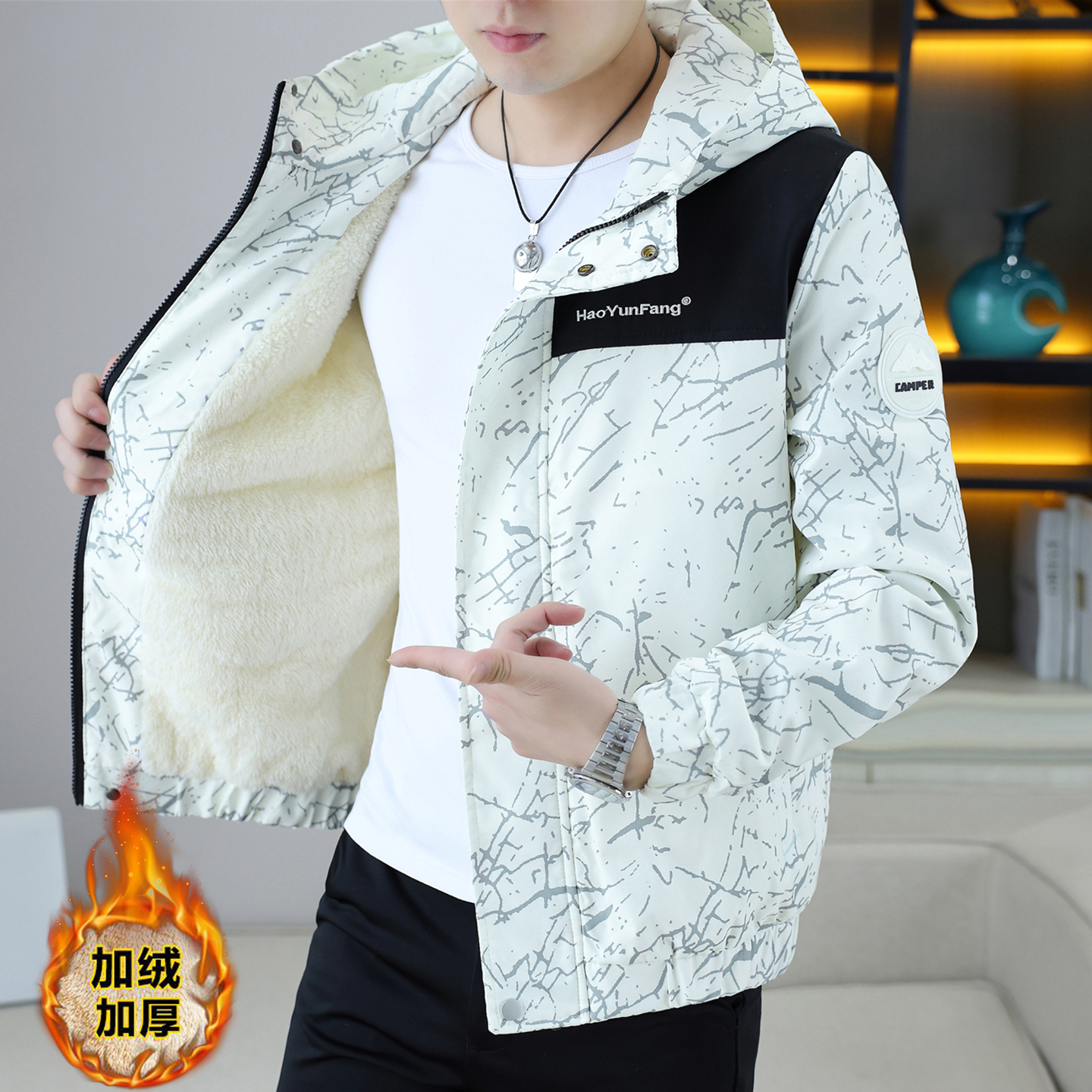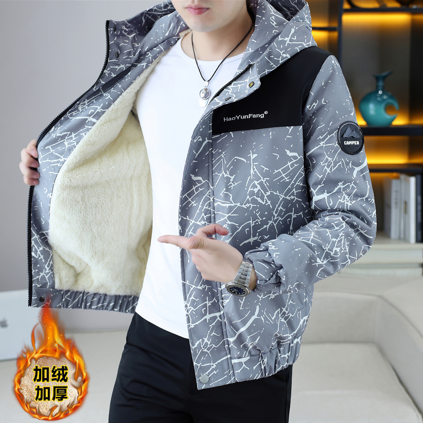 冬季新款加绒加厚夹克男士潮牌韩版帅气连帽休闲外套冬装保暖棉衣