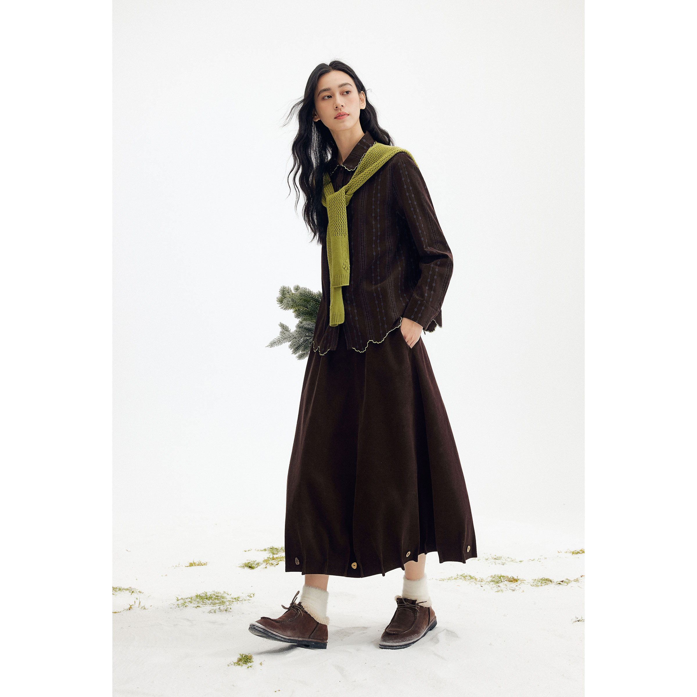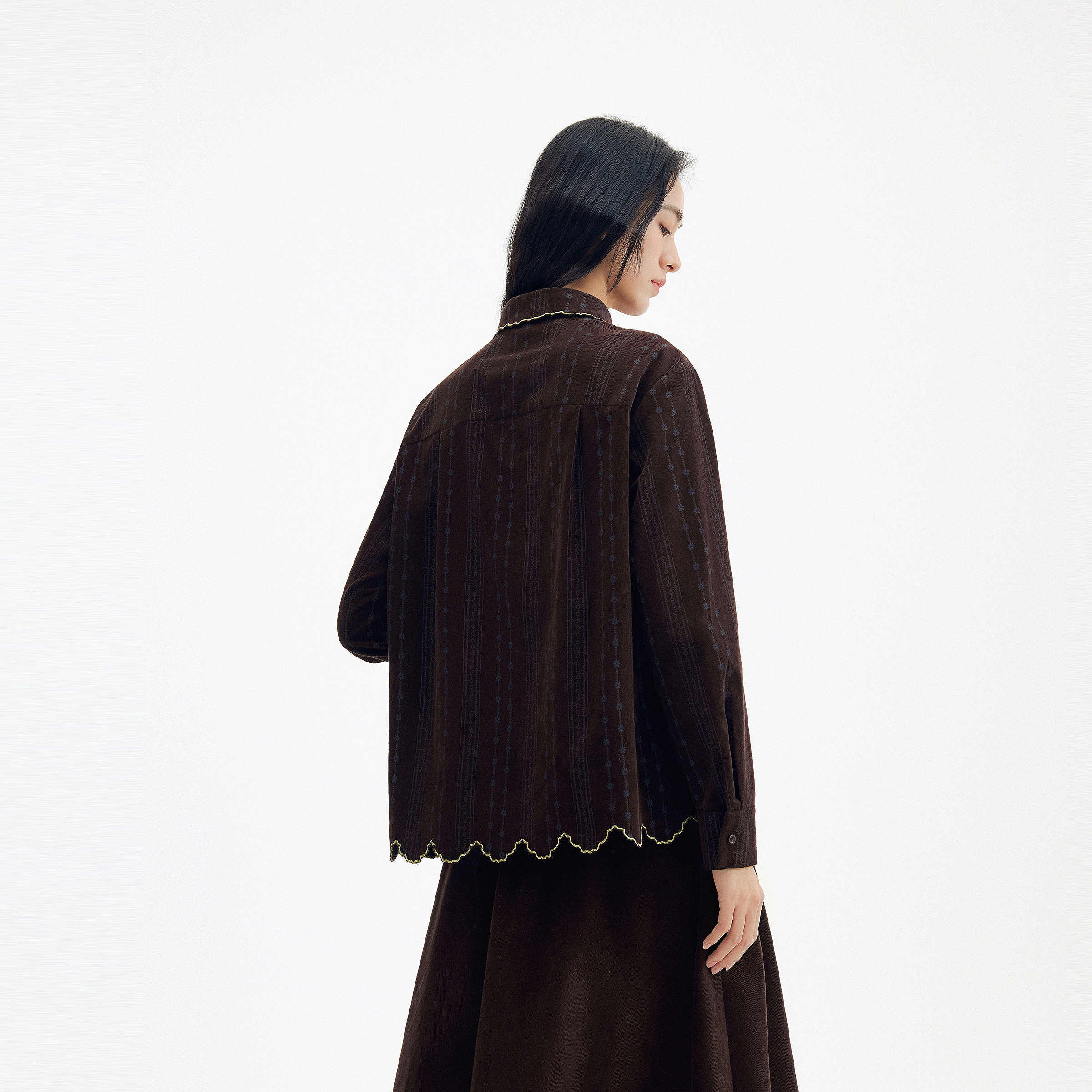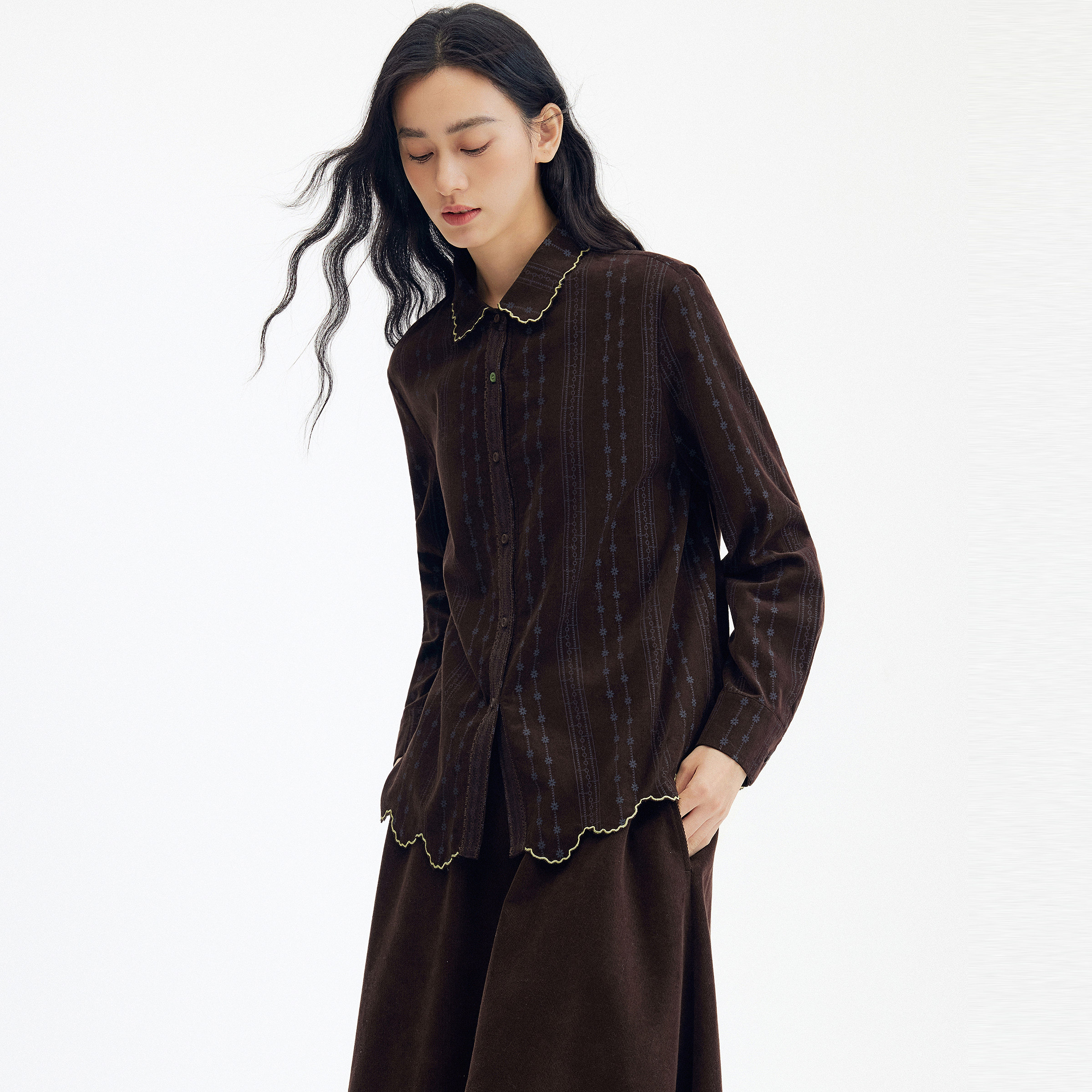 飞鸟和新酒复古不规则刺绣长袖衬衫女2025冬季新款宽松纯棉上衣