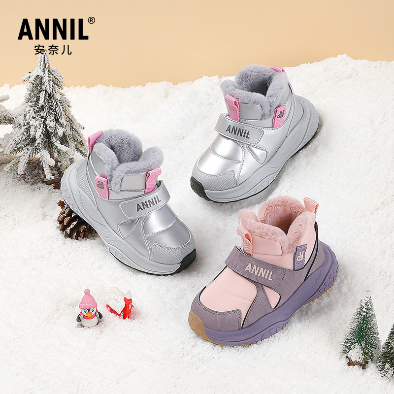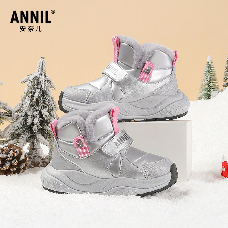 annil安奈儿童鞋儿童雪地靴2025冬季新款加绒保暖女童鞋子棉鞋女
