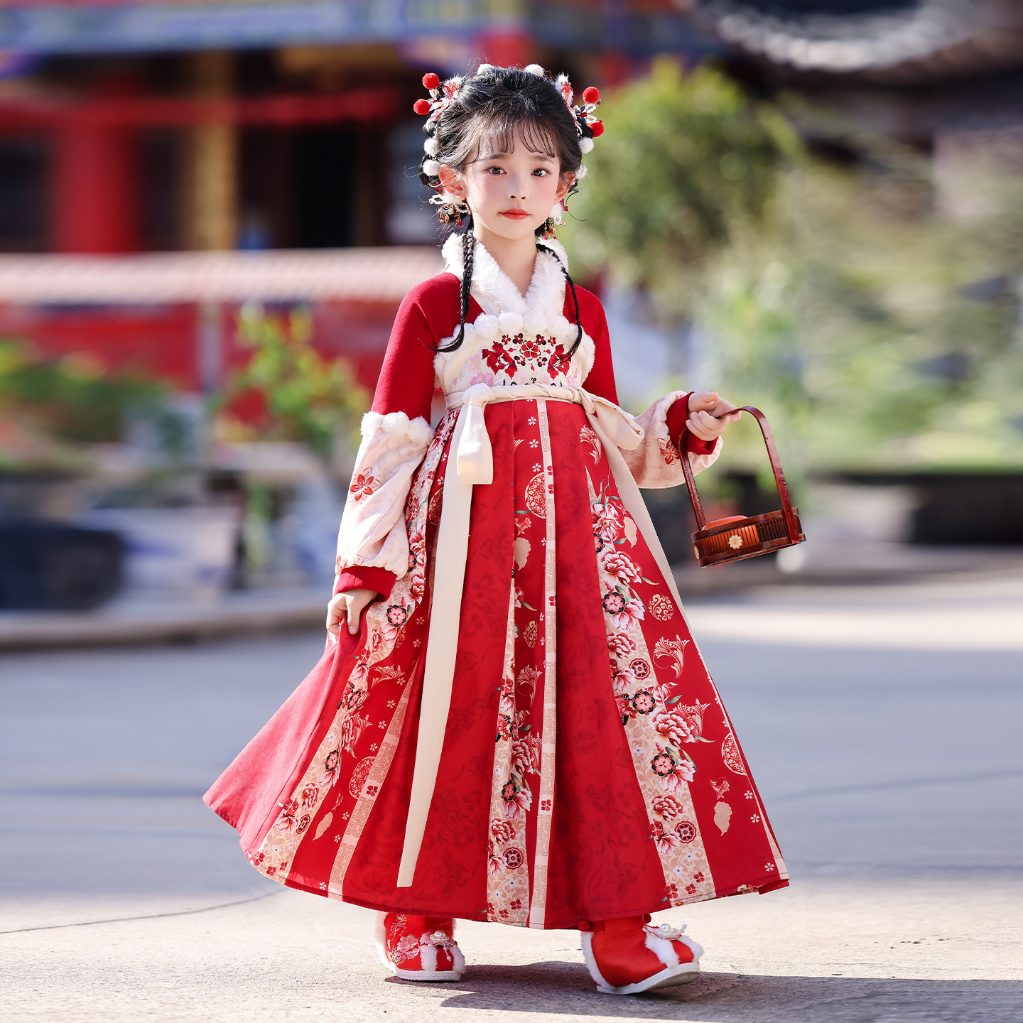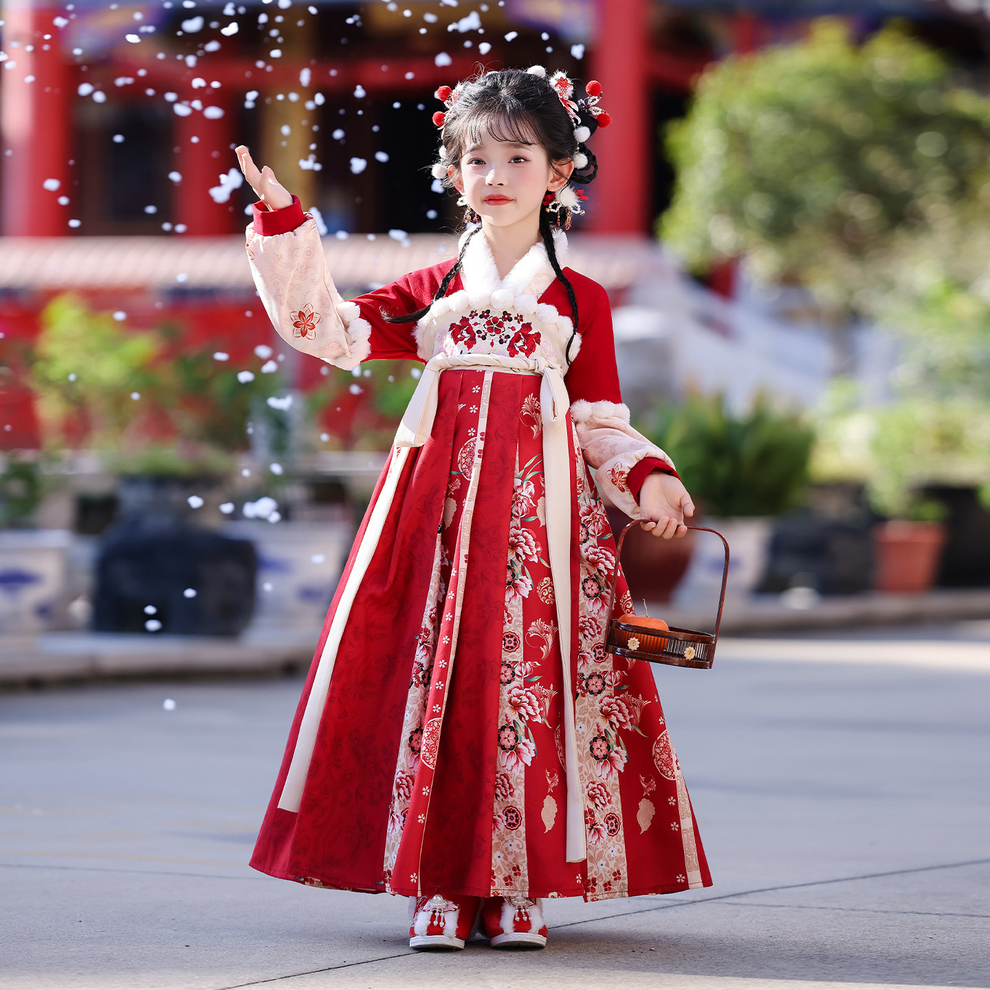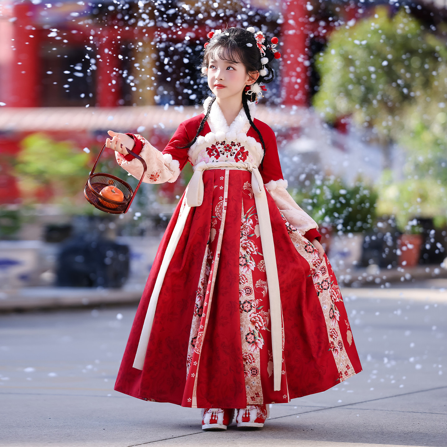 拜年服女童连衣裙冬装古装2025新款唐装冬季儿童古风新年汉服冬款