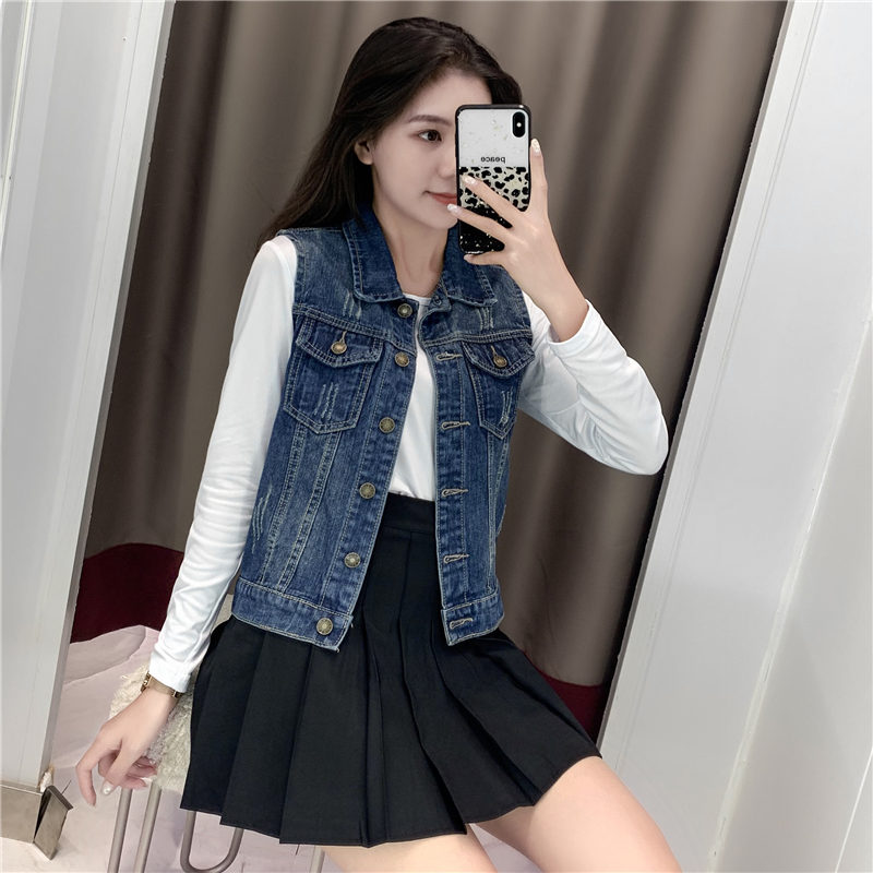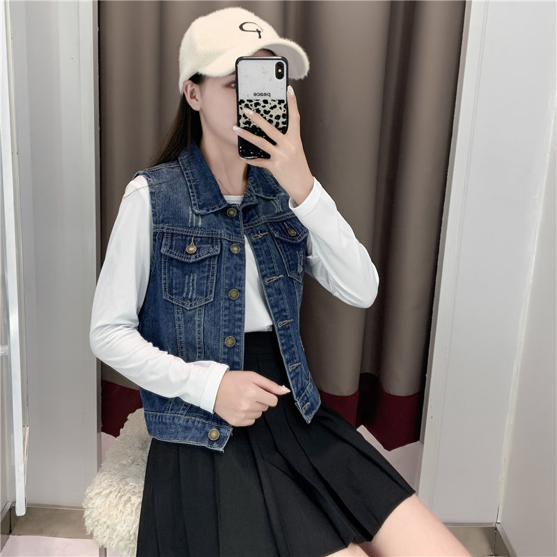 春秋韩版显瘦短款无袖牛仔马甲女马夹背心坎肩外搭外套上衣