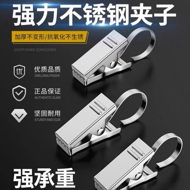 窗帘夹子锯齿挂钩家用特厚强力不锈钢浴帘夹子老式配件开口环圈扣